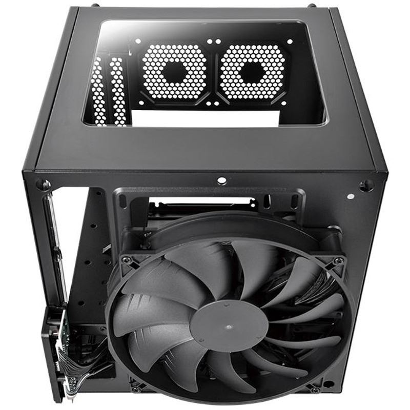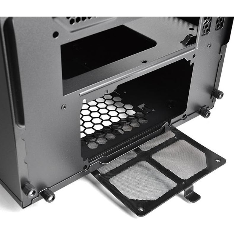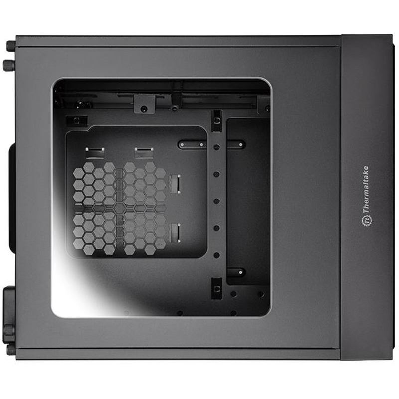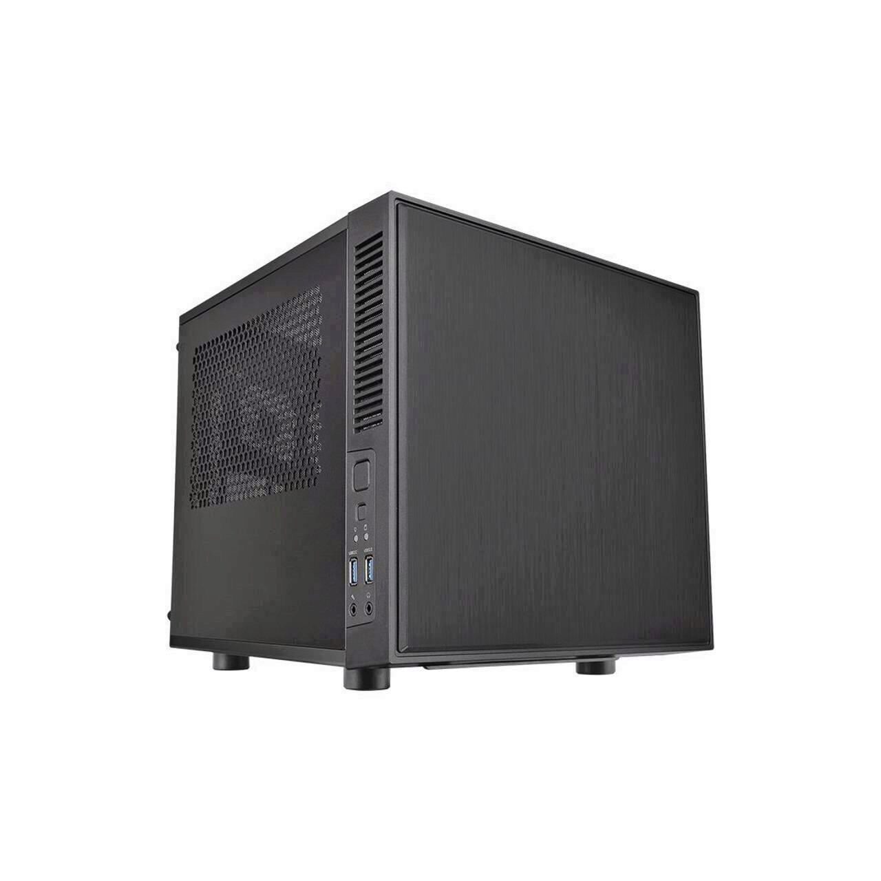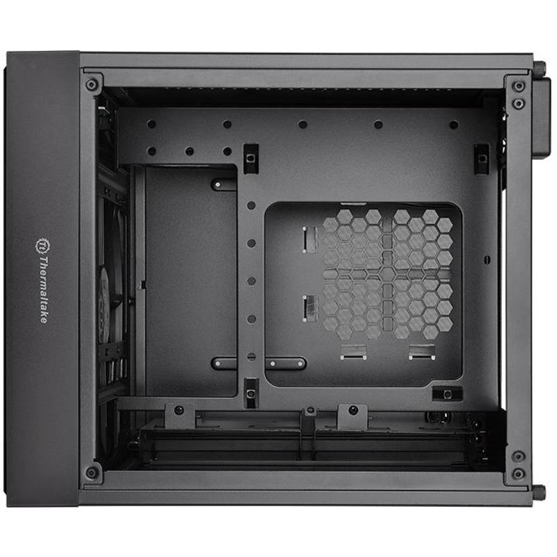 Thermaltake Suppressor F1, SPCC Steel Mini-ITX Cube, fara sursa (tip ATX, montata jos), interior vopsit negru, 2x3.5” (intern), 2x2.5” (intern), design tool-less, panouri laterale interschimbabile ce permit personalizarea carcasei in functie de preferinte, fata – 1x 200mm fan (800 RPM, 13 dBA, inclus) sau 1x 140/120mm fan (optional), spate – 2x 80mm fans (optional), 2x USB 3.0, HD Audio, sloturi expansiune: x2, Mini-ITX, inaltime maxima cooler procesor: 140mm, lungime maxima placa video: 285mm, lungime maxima sursa alimentare: 200mm, suport radiatoare water cooling: fata – 1 x 120mm sau 1 x 140mm, filtre de praf incluse, dimensiuni (HxWxD): 276 x 260 x 319 mm, greutate: 3.2kg