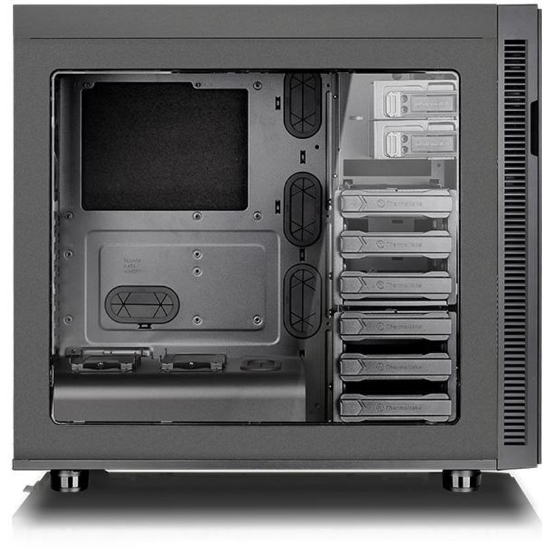 Thermaltake Suppressor F51 Power Cover Edition, SPCC Steel EATX Full Tower, fara sursa (tip ATX, montata jos), interior vopsit negru, 2x5.25” (extern), 6x3.5”/2.5” (intern), 2x2.5” (intern), design tool-less, fata – 1x 200mm fan (600-800 RPM, 13-15 dBA, inclus) sau 2x 140mm fans (optional) sau 3x 120mm fans (optional), spate – 1x 140mm Turbo fan (1000 RPM, 16 dBA, inclus) sau 1x 120mm fan (optional), podea – 2x 120mm fans (optional), tavan – 2x 200mm fans (optional) sau 3x 140/120mm fans (optional), 2x USB 3.0, 2x USB 2.0, HD Audio, sloturi expansiune: x8, EATX / ATX / microATX / Mini-ITX, inaltime maxima cooler procesor: 185mm, lungime maxima placa video: 310mm (cu rack HDD) sau 465mm (fara rack HDD), lungime maxima sursa: 220mm (cu ventilatorul din podea instalat), suport radiatoare water cooling: fata – 1 x 360mm sau 1 x 420mm, tavan – 1 x 360mm sau 1 x 420mm, spate – 1 x 120mm, podea – 1 x 240mm, dimensiuni: 525 x 230 x 577mm, greutate: 12.2kg