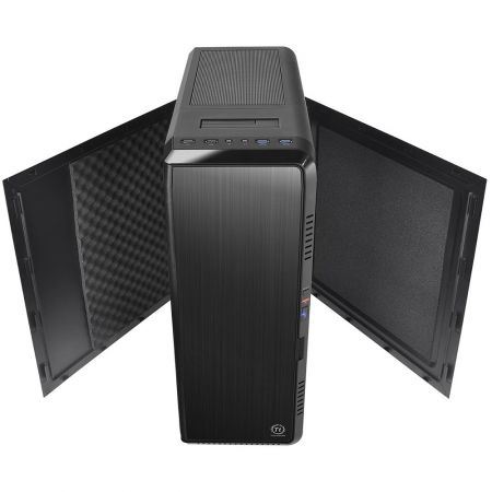 Thermaltake Urban T31, SECC Steel ATX Mid Tower, fara sursa, interior vopsit negru, 3x5.25” (extern), 1x3.5” (extern, convertibil dintr-un bay de 5.25”), 6x3.5”/2.5” (intern), 1x3.5”/2.5” (HDD Docking Station), design tool-less, fata – 1x 120mm Turbo fan (1000 RPM, 16 dBA, inclus) si 1x 120mm fan (optional), spate – 1x 120mm Turbo fan (1000 RPM, 16 dBA, inclus), podea – 1x 120mm fan (optional), tavan – 2x 140/120mm fans (optional), 2x USB 3.0, 2x USB 2.0, HD Audio, sloturi expansiune: x7, ATX / microATX, inaltime maxima cooler procesor: 155mm, lungime maxima placa video: 290mm (cu rack HDD) sau 410mm (fara rack HDD), suport radiatoare water cooling: tavan - 1 x 120mm sau 2 x 120mm, spate – 1 x 120mm, filtre de praf incluse, dimensiuni: 511 x 206 x 500 mm, greutate: 7.2 kg
