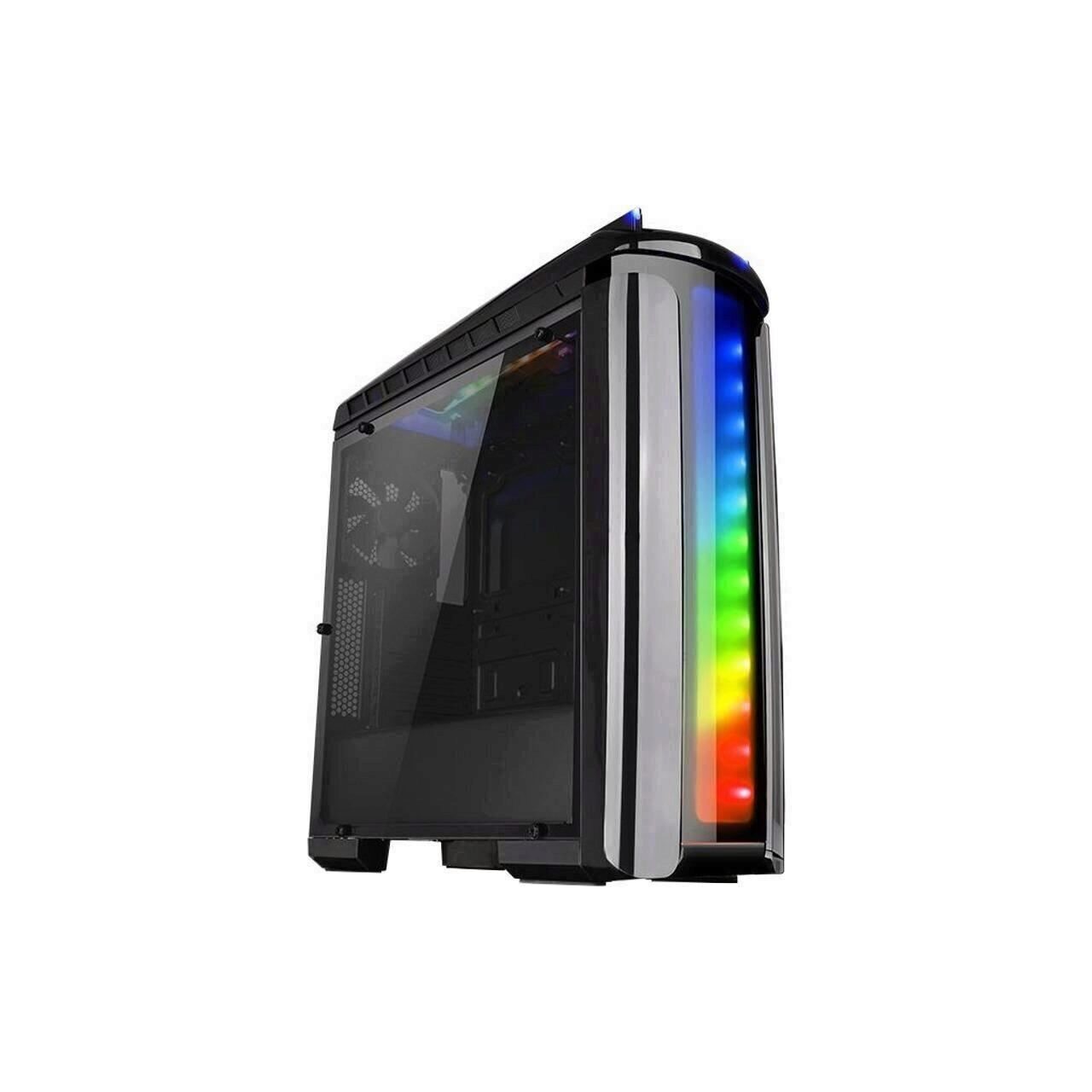 Thermaltake Versa C22 RGB, SPCC Steel ATX Mid Tower, fara sursa (tip ATX, montata jos), interior vopsit negru, 2x3.5”/2.5” (intern), 2x2.5” (intern), design tool-less, fata – 2x 120mm fans sau 1x 140mm fan (optional), spate – 1x 120mm fan (1000 RPM, 16 dBA, inclus), tavan – 2x 120mm fans (optional), 2x USB 3.0, 2x USB 2.0, HD Audio, include sistem de iluminare LED a carcasei in 7 culori si cu diverse efecte de iluminare, ATX / microATX / Mini-ITX, sloturi expansiune: x7, inaltime maxima cooler procesor: 160mm, lungime maxima placa video: 390mm (fara ventilator frontal montat), lungime maxima sursa: 180mm, suport radiatoare water cooling: fata - 1 x 240mm sau 1 x 140mm, tavan – 1 x 240mm, dimensiuni: 538 x 198 x 490mm, greutate: 5.7kg