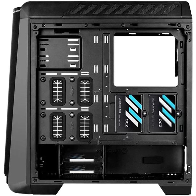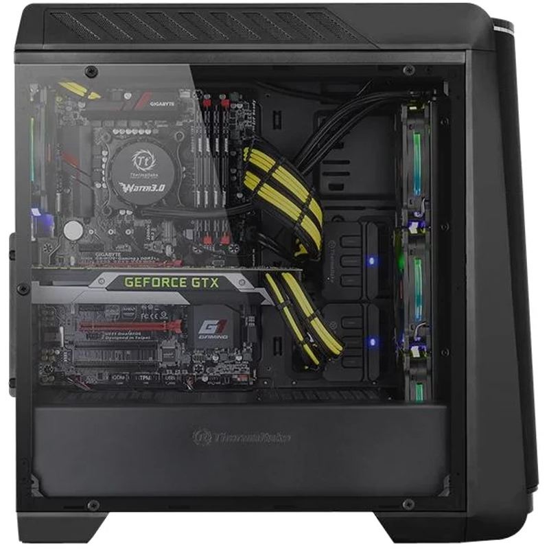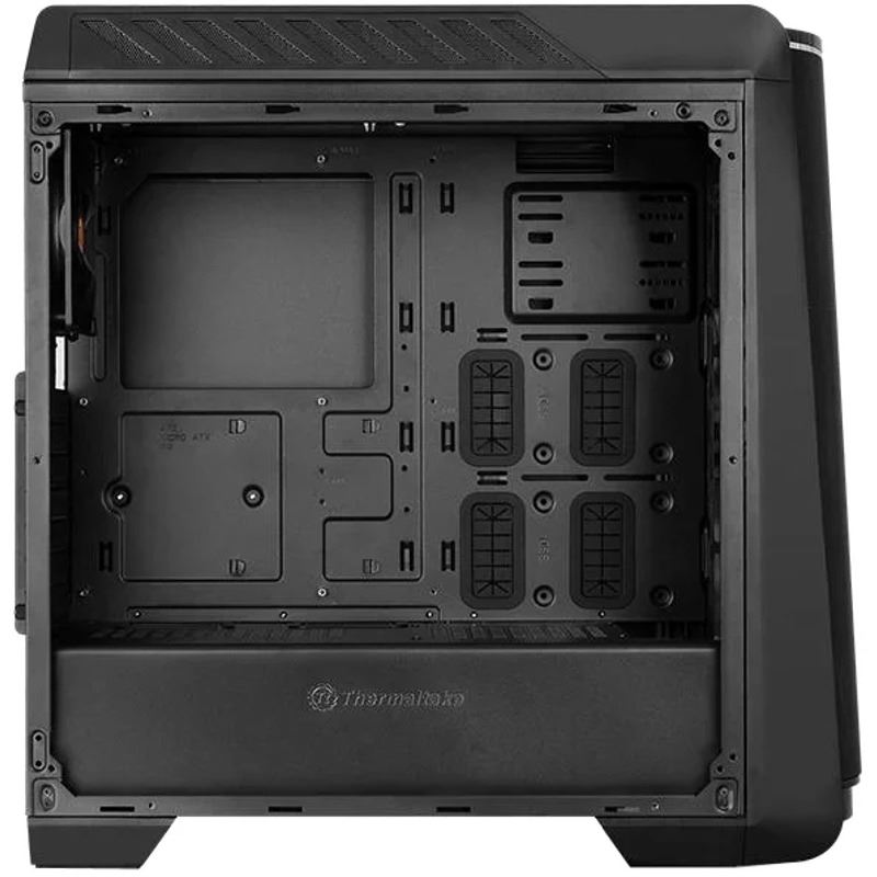 Thermaltake Versa C24 RGB, SPCC Steel ATX Mid Tower, fara sursa (tip ATX, montata jos), interior vopsit negru, design premium cu panoul lateral din sticla securizata cu grosimea de 4mm, 2x2.5” (intern), 2x2.5”/3.5” (intern), 2x2.5” (ascunse), fata – 3x 120mm sau 2x 140mm fans (optional), spate – 1x 120mm fan (1000 RPM, 16 dBA, inclus), tavan – 2x 120mm fans (optional), 2x USB 3.0, 2x USB 2.0, HD Audio, include sistem de iluminare LED a carcasei in 7 culori si cu diverse efecte de iluminare, ATX / microATX / Mini-ITX, sloturi expansiune: x7, inaltime maxima cooler procesor: 160mm, lungime maxima placa video: 380mm, lungime maxima sursa: 180mm, suport radiatoare water cooling: fata - 1 x 360mm sau 1 x 280mm, tavan – 1 x 240mm, spate – 1 x 120mm, dimensiuni (WxDxH): 516 x 213 x 512mm, greutate: 5.9kg