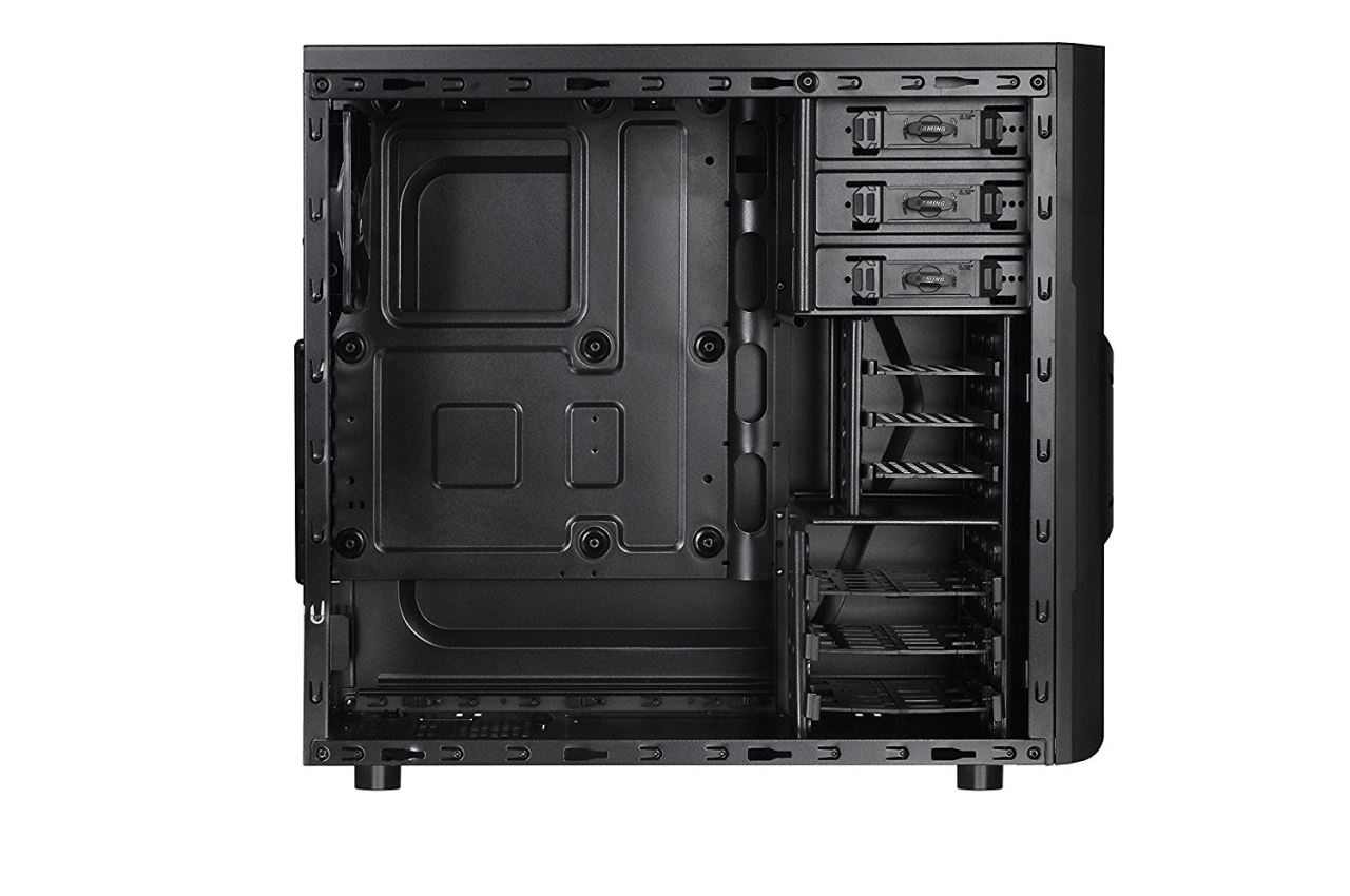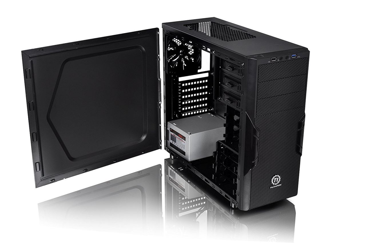 Thermaltake Versa H22, SPCC Steel ATX Mid Tower, fara sursa, interior vopsit negru, 3x5.25” (extern), 3x3.5”/2.5” (intern), 3x2.5” (intern), design tool-less, fata – 2x 120mm fans (optional), spate – 1x 120mm Turbo fan (1000 RPM, 16 dBA, inclus), 1x USB 3.0, 1x USB 2.0, HD Audio, ATX / microATX, sloturi expansiune: x7, inaltime maxima cooler procesor: 155mm, lungime maxima placa video: 315mm, suport radiatoare water cooling: spate – 1 x 120mm, filtre de praf incluse, dimensiuni: 429 x 209 x 480mm, greutate: 4.2kg