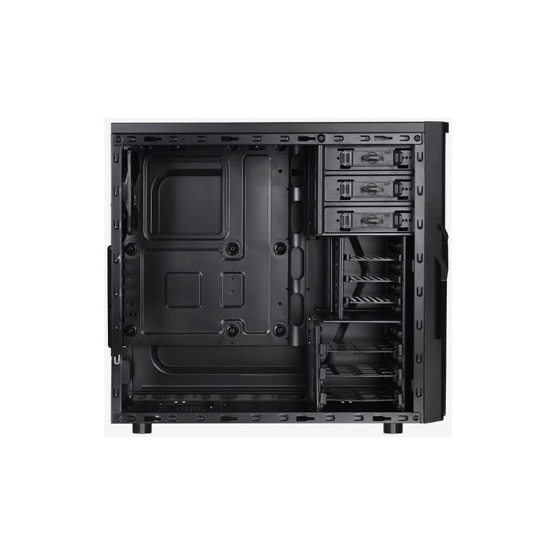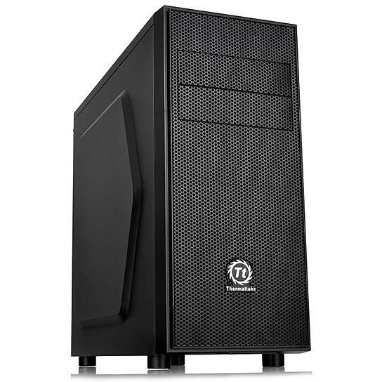 Thermaltake Versa H24, SPCC Steel ATX Mid Tower, fara sursa, interior vopsit negru, 3x5.25” (extern), 3x3.5”/2.5” (intern), 3x2.5” (intern), design tool-less, fata – 2x 120mm fans (optional), spate – 1x 120mm Turbo fan (1000 RPM, 16 dBA, inclus), tavan – 2x 120mm fans (optional), 1x USB 3.0, 1x USB 2.0, HD Audio, ATX / microATX, sloturi expansiune: x7, inaltime maxima cooler procesor: 155mm, lungime maxima placa video: 315mm, suport radiatoare water cooling: spate – 1 x 120mm, filtre de praf incluse, dimensiuni: 429 x 209 x 478mm, greutate: 4.2kg