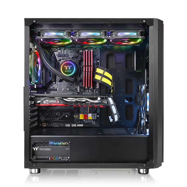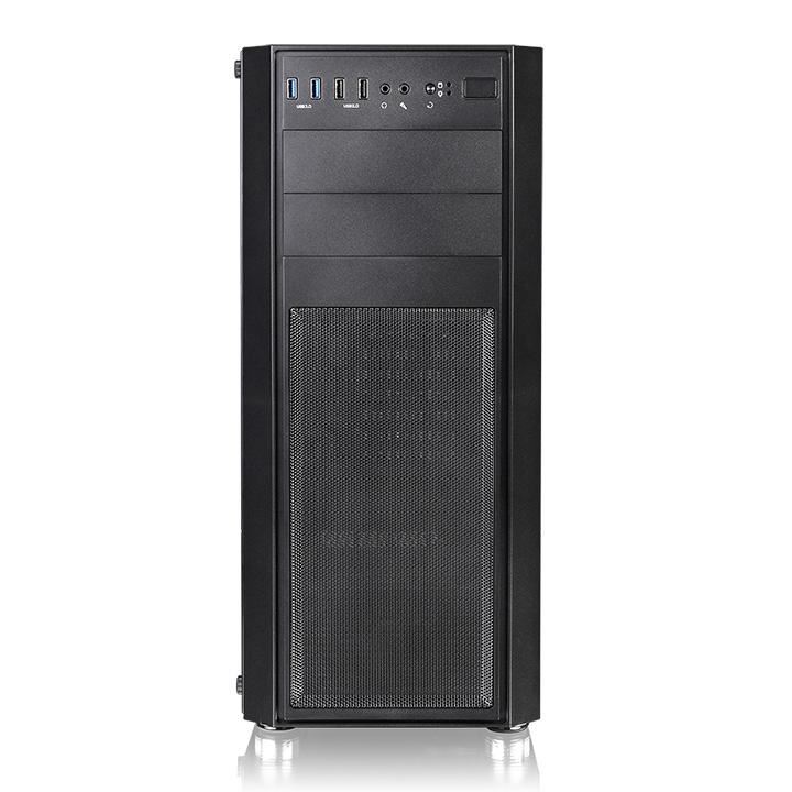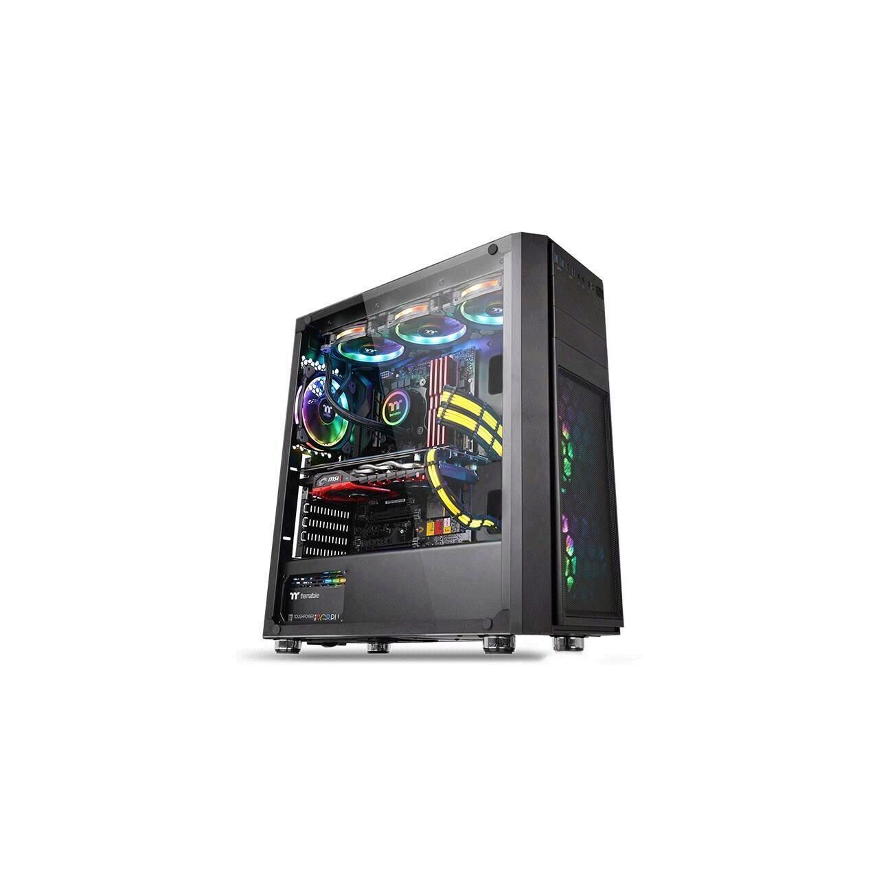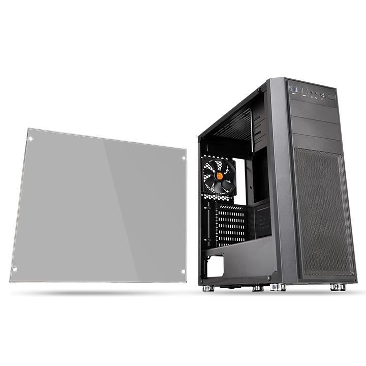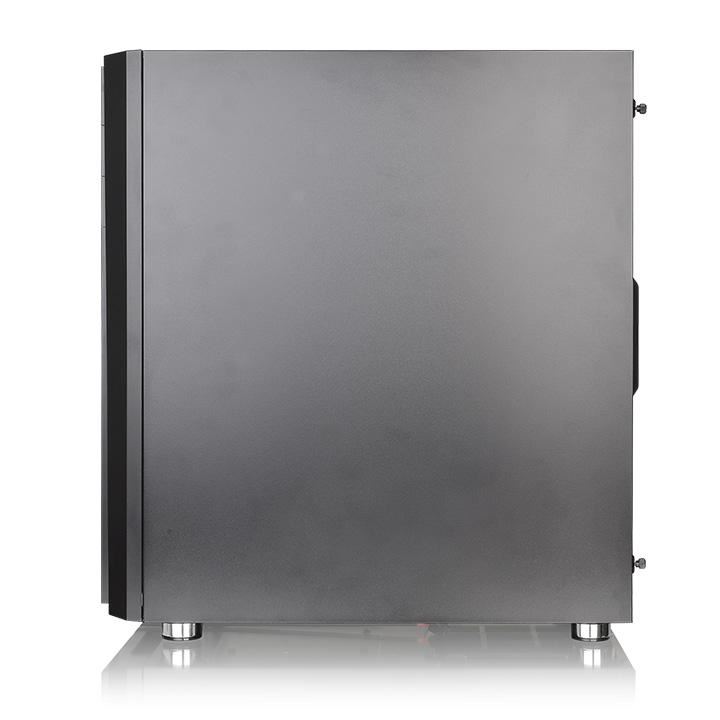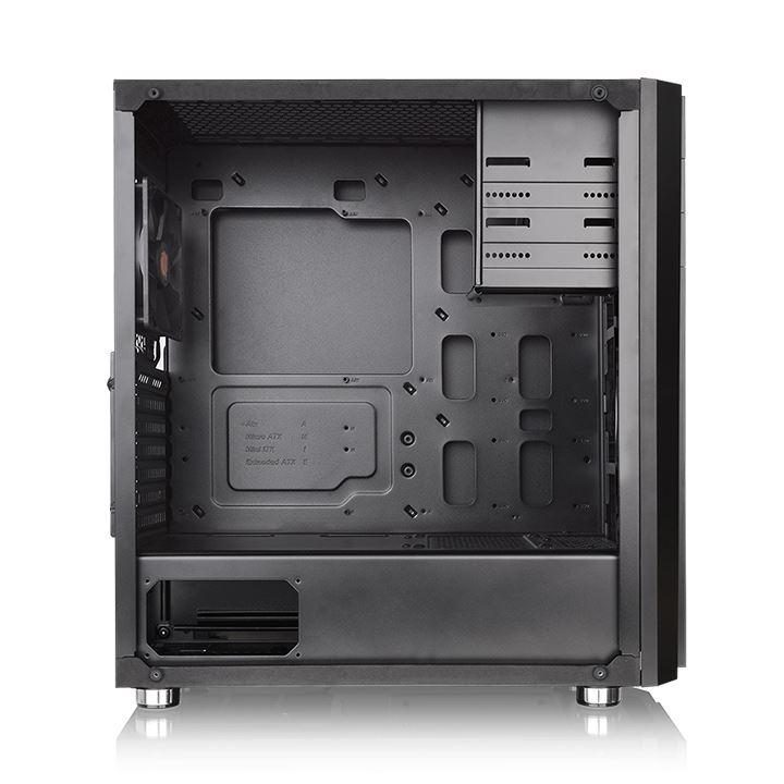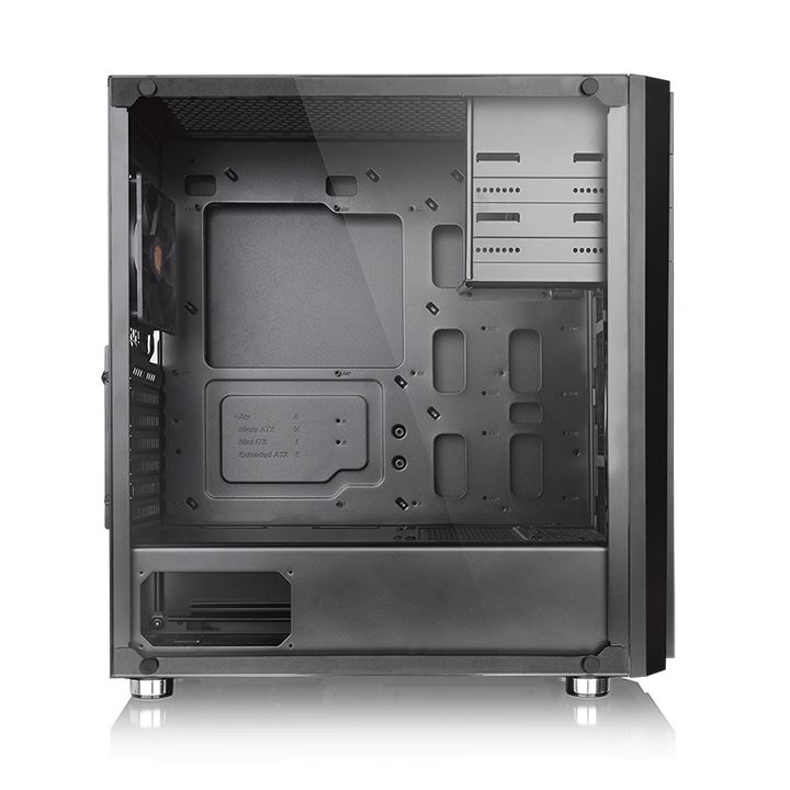 Thermaltake Versa H26 Tempered Glass Black, SPCC Steel ATX Mid Tower, fara sursa (tip ATX, montata jos), design premium cu panoul lateral din sticla securizata cu grosimea de 4mm, interior vopsit negru, 2x5.25” (extern), 2x3.5”/2.5” (intern, ascunse), 3x2.5” (intern, ascunse), design tool-less, fata – 3x 120mm fans (optional), spate – 1x 120mm fan (1000 RPM, 16 dBA, inclus), tavan – 3x 120mm / 2x 140mm fan (optional), 2x USB 3.0, 2x USB 2.0, HD Audio, ATX / microATX / Mini-ITX, sloturi expansiune: x7, inaltime maxima cooler procesor: 160mm, lungime maxima placa video: 310mm, lungime maxima sursa: 220mm, suport radiatoare water cooling: spate – 1 x 120mm, tavan – 1 x 360mm / 1x 280mm, fata – 1x 360mm, dimensiuni: 493 x 220 x 464 mm, greutate: 6.9kg