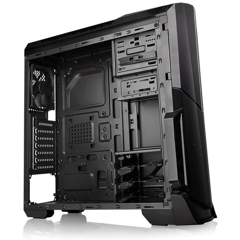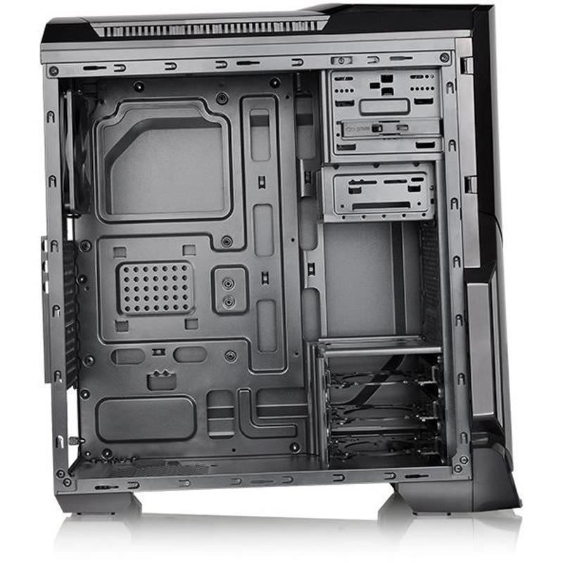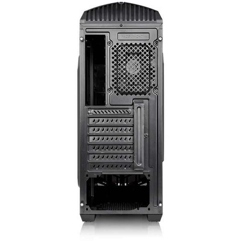 Thermaltake Versa N21, SPCC Steel ATX Mid Tower, fara sursa, interior vopsit negru, 1x5.25” (extern), 1x3.5” (extern), 3x3.5”/2.5” (intern), 1x2.5” (intern), design tool-less, fata – 2x 120mm fans (optional), spate – 1x 120mm fan (1000 RPM, 16 dBA, inclus), tavan – 2x 120mm fans (optional), 1x USB 3.0, 2x USB 2.0, HD Audio, sloturi expansiune: x7, ATX / microATX, inaltime maxima cooler procesor: 160mm, lungime maxima placa video: 350mm, dimensiuni: 513 x 217 x 463mm, greutate: 4.6kg