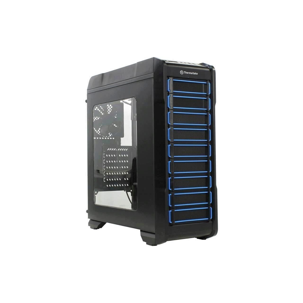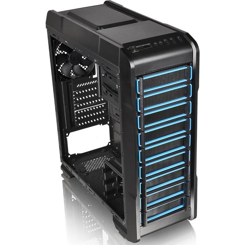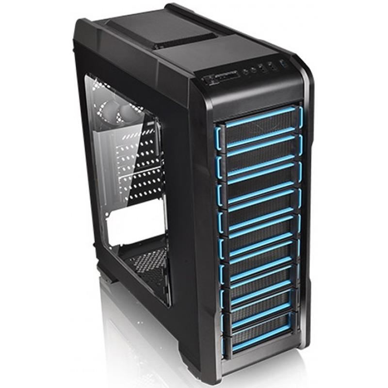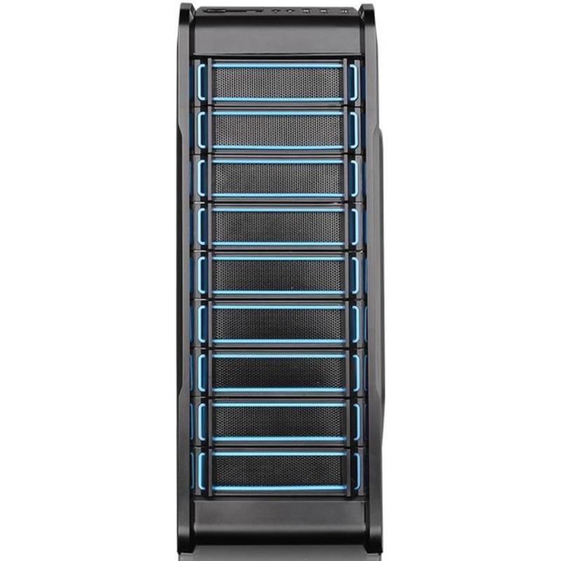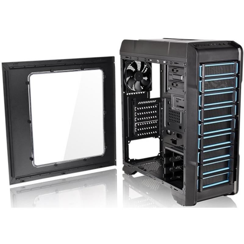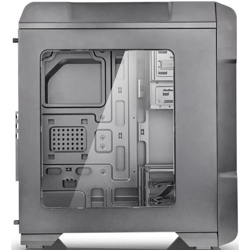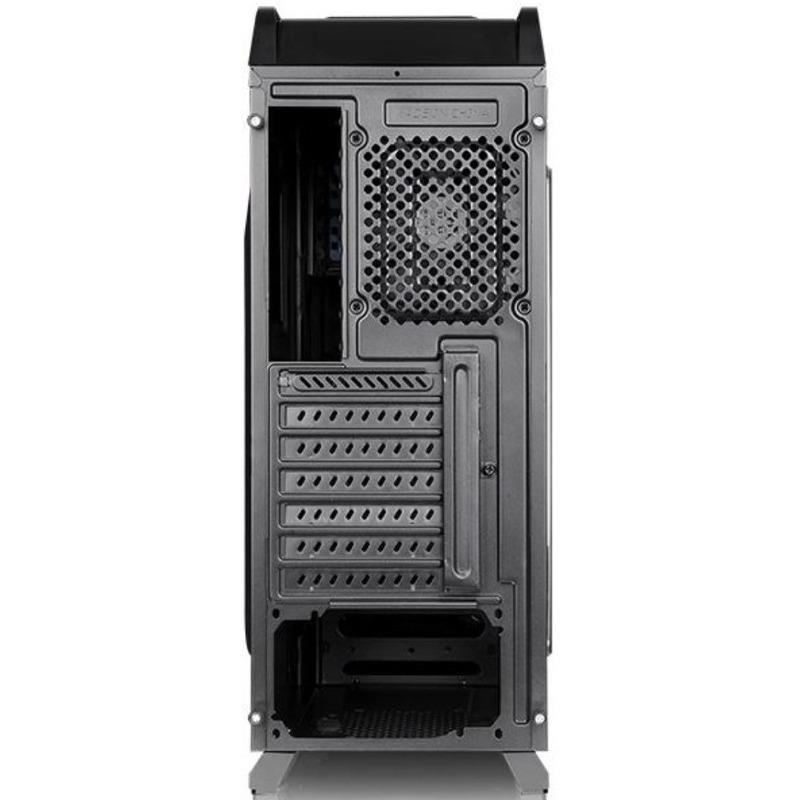 Thermaltake Versa N23, SPCC Steel ATX Mid Tower, fara sursa (tip ATX, montata jos), interior vopsit negru, 2x5.25” (extern), 3x3.5”/2.5” (intern), 1x2.5” (intern), design tool-less, fata – 2x 120mm fans (optional), spate – 1x 120mm fan (1000 RPM, 16 dBA, inclus), tavan – 2x 120mm fan (optional), 1x USB 3.0, 2x USB 2.0, HD Audio, ATX / microATX / Mini-ITX, sloturi expansiune: x7, inaltime maxima cooler procesor: 160mm, lungime maxima placa video: 360mm (fara cusca hard disk montata) sau 250mm (cu cusca hard disk montata), lungime maxima sursa: 200mm, suport radiatoare water cooling: spate – 1 x 120mm, tavan – 1 x 240mm, dimensiuni: 455 x 194 x 503mm, greutate: 4.1kg