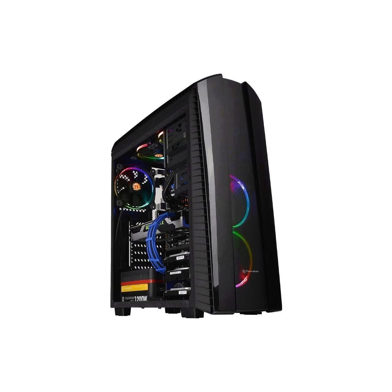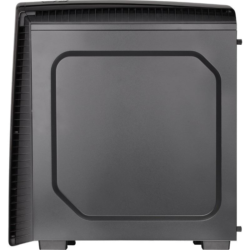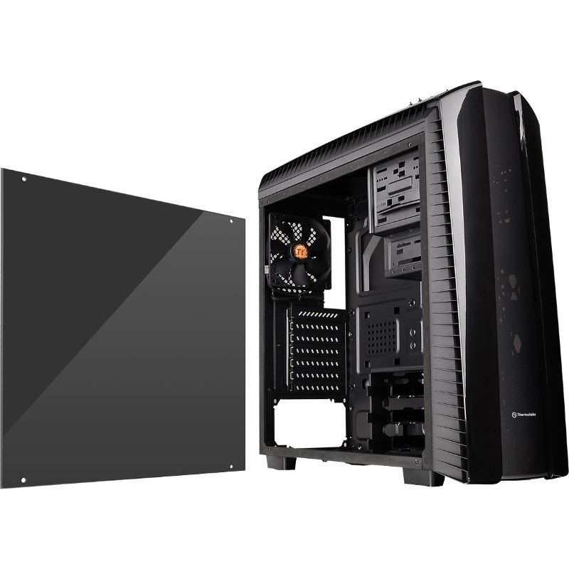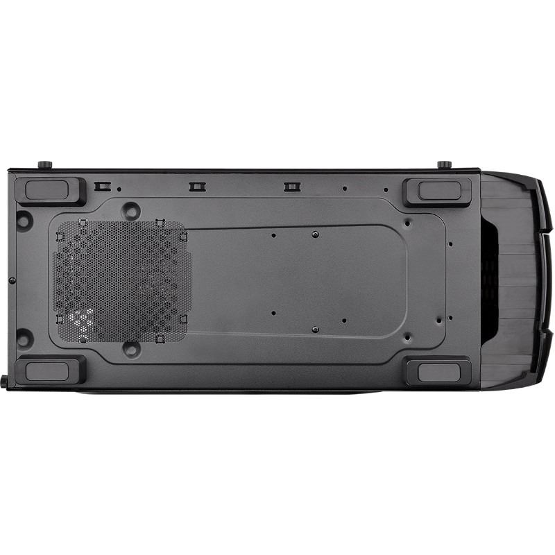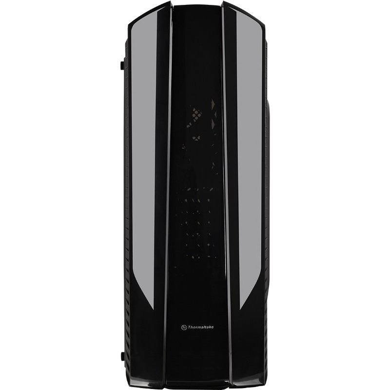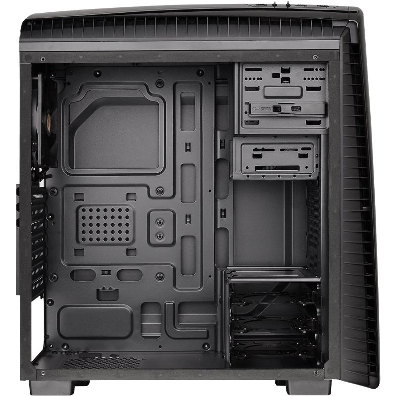Thermaltake Versa N27, SPCC Steel ATX Mid Tower, fara sursa (tip ATX, montata jos), interior vopsit negru, 3x3.5”/2.5” (intern), 1x3.5/”2.5” (intern), 1x2.5” (intern), fata – 2x 120mm fans (optional), spate – 1x 120mm fan (1000 RPM, 16 dBA, inclus), tavan – 2x 120mm fans (optional), 1x USB 3.0, 2x USB 2.0, HD Audio, ATX / microATX / Mini-ITX, sloturi expansiune: x7, inaltime maxima cooler procesor: 160mm, lungime maxima placa video: 360mm (fara cusca hard disk montata) sau 250mm (cu cusca hard disk montata), suport radiatoare water cooling: spate – 1 x 120mm, tavan – 1 x 240mm, dimensiuni (HxWxD): 502 x 201 x 473mm, greutate: 4.7kg