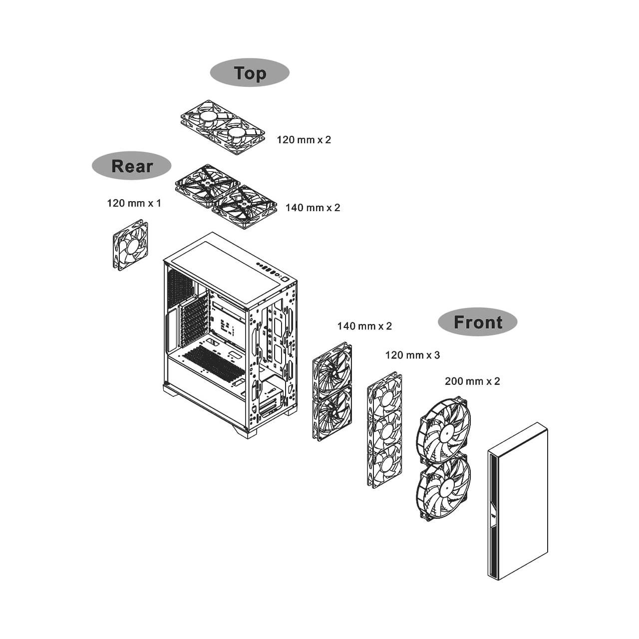 Carcasa Thermaltake Versa T35 Tempered Glass RGB neagra, SPCC Steel ATX Mid Tower, fara sursa (tip ATX, montata jos), interior vopsit negru, design premium cu panou lateral din sticla securizata cu grosimea de 4mm si panou frontal iluminat RGB, 2x3.5”/2.5” (intern), 2x2.5” (intern), design tool-less, fata – 2x 200mm sau 3x 120 mm sau 2x 140mm (optional), spate – 1x 120mm fan (1000 RPM, 16dBA, inclus), tavan – 2x 140/120mm fan (optional), 1x USB 3.0, 2x USB 2.0, HD Audio, sloturi expansiune: x7, ATX / microATX / Mini-ITX, inaltime maxima cooler procesor: 150mm, lungime maxima placa video: 300mm, lungime maxima sursa alimentare: 160mm (cu cusca HDD) sau 200mm (fara cusca HDD), suport radiatoare water cooling: fata – 1 x 360/240/120/280/140mm, spate – 1 x 120mm, tavan – 1x 240/120mm, dimensiuni (HxWxD): 416 x 210 x 480mm, greutate: 6.65kg