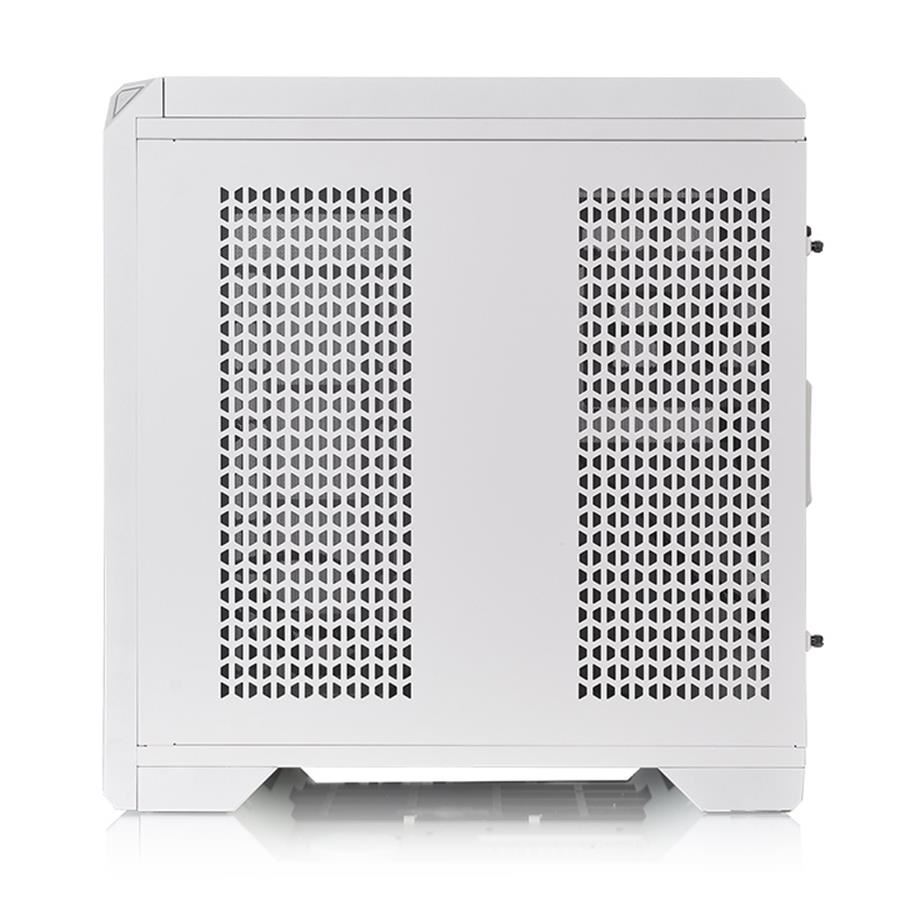 Carcasa Thermaltake View 51 TG Snow Edition aRGB alba, SPCC Steel EATX Mid Tower, fara sursa, interior vopsit alb, 2x3.5”/2.5” (intern), 2x2.5” (intern), design tool-less, fata – 2x 200mm aRGB LRD fans (600 RPM, 24 dBA, inclus) si 3x 120/140mm fan (optional), spate – 1x 120mm aRGB LED fan (1000 RPM, 27.2 dBA, inclus), podea – 3x 120mm fans (optional), tavan – 2x 200mm sau 3x 120/140mm fans (optional), interior dreapta – 3x 120mm / 2x 140mm (optional), 1 x USB 3.1 (Gen 2) Type C, 2x USB 3.0, 2x USB 2.0, HD Audio, sloturi expansiune: x8, EATX / ATX / microATX / Mini-ITX, inaltime maxima cooler procesor: 175mm, lungime maxima placa video: 300mm (cu pompa) sau 440mm (fara pompa), suport radiatoare water cooling: fata – 1 x 120/240/360/140/280mm, tavan – 1 x 120/240/360/140/280mm, podea – 1 x 120/240/360mm, design premium cu panou lateral si frontal din sticla securizata, filtre de praf incluse, dimensiuni: 550 x 315 x 525mm, greutate: 14.95kg
