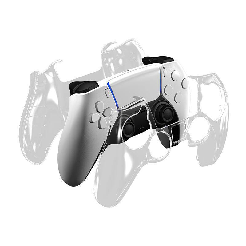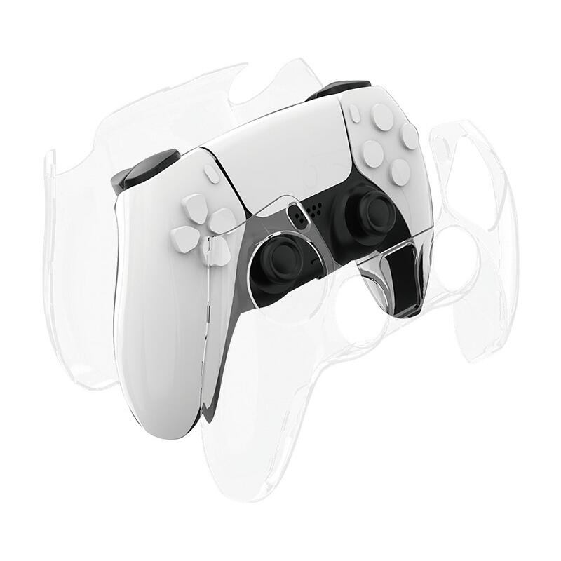 Carcasa transparenta FlashFire P801 transparenta, carcasa de protectie din plastic transparent, anti-zgarieturi, rezistent la socuri si cazaturi, acopera fata si spatele controller-ului de PlayStation 5