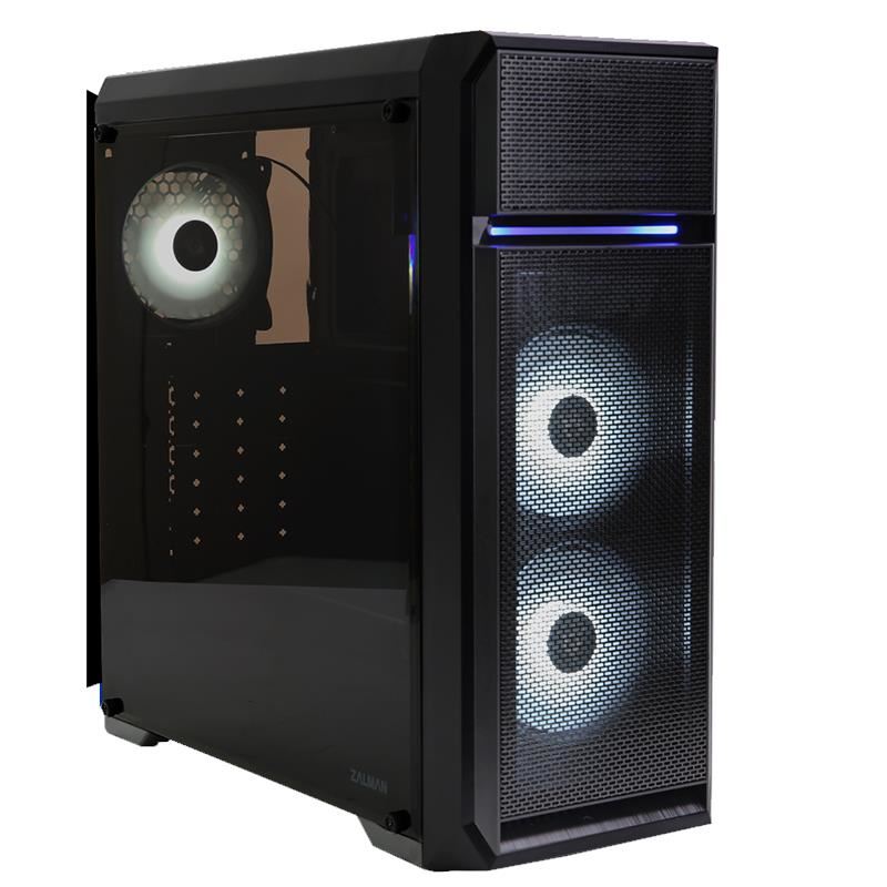 Carcasa Zalman N5 OF neagra, SECC Steel ATX Mid Tower, fara sursa, interior vopsit negru, 1x 5.25” (extern), 2x3.5”/2.5” (intern), 4x2.5” (intern), design tool-less, fata – 2x 120mm White LED fan (inclus), spate – 1x 120mm White fan (inclus), tavan – 3x 120mm fan (optional), podea – 2x 120mm fan (optional), 1x USB 3.0, 2x USB 2.0, fan/LED controller, HD Audio, sloturi expansiune: x7, ATX , M-ATX, M-ITX, design premium cu panou lateral din plexiglas, fan controller inclus, inaltime maxima cooler procesor: 158mm, lungime maxima placa video: 365mm, filtre de praf incluse, suport radiatoare water cooling: fata – 120/240mm, spate - 120mm, dimensiuni: 450x200x437mm, greutate: 3.6kg