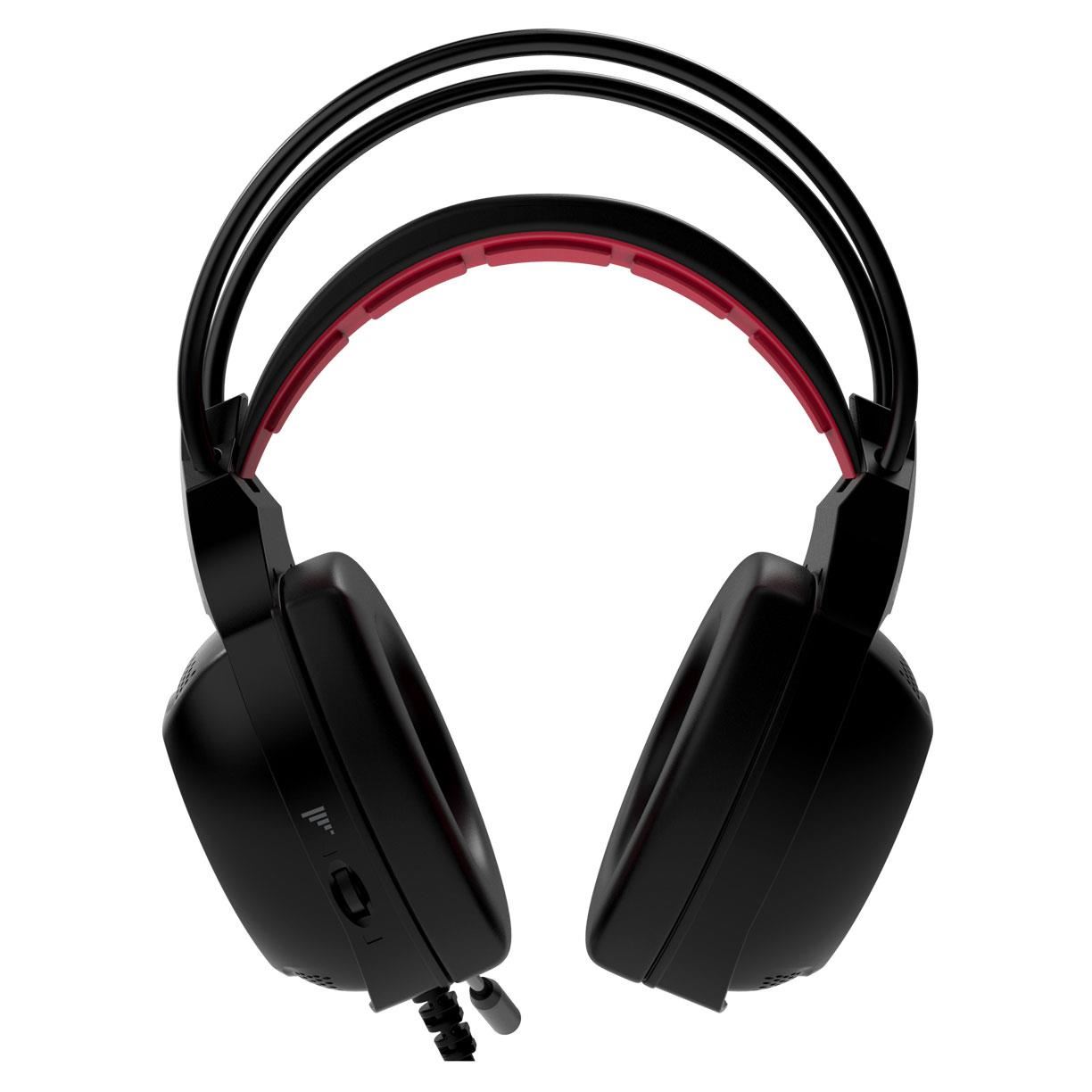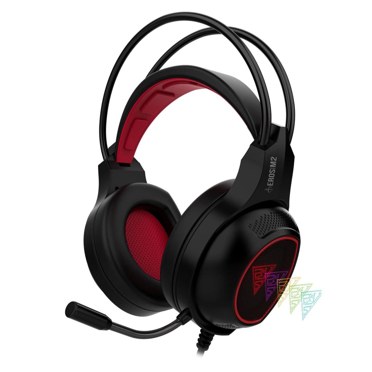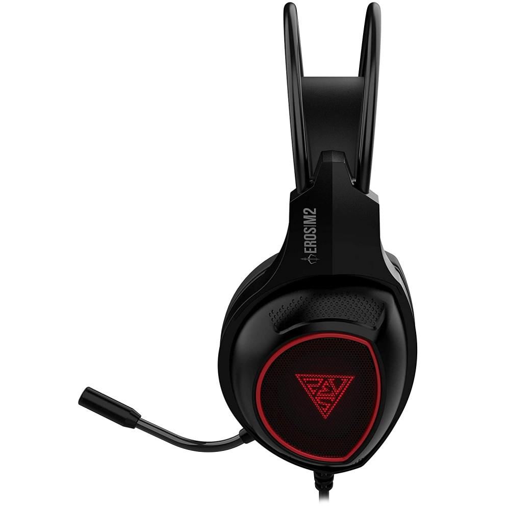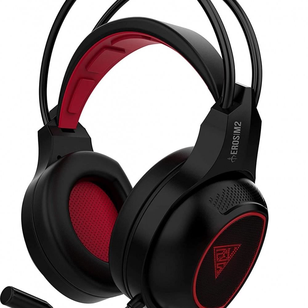 Casti Gamdias Eros M2 negre cu rosu, design ergonomic, iluminare LED multicolora, butoane control pe casca, microfon omnidirectional flexibil (sensibilitate: -42dB±2dB), difuzoare: 40mm (impedanta: 32Ω, sensibilitate: 118±3dB), conectori: USB placat cu aur, lungime cablu: 2m