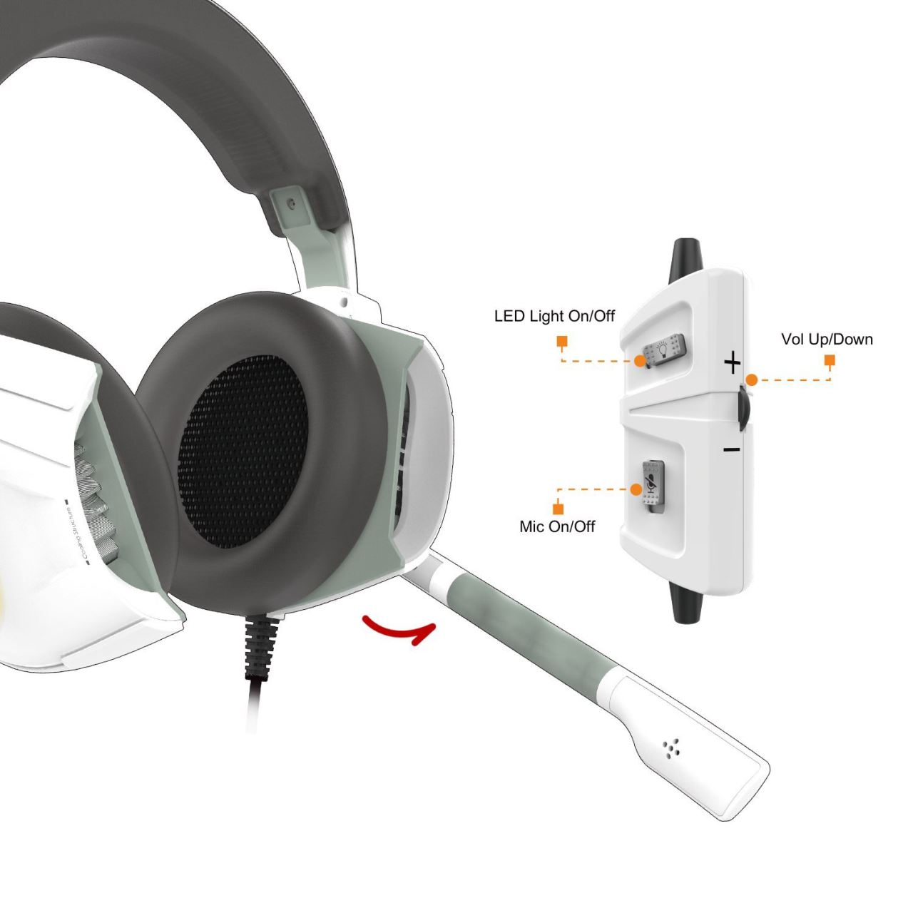 Gamdias Hephaestus E1 Multicolor Headset, design ergonomic, iluminare LED 7 culori, telecomanda pe fir, design ergonomic, radiatoare pentru mentinerea temperaturii optime de functionare, microfon omnidirectional flexibil (dimensiuni: ∅6x5mm, sensibilitate: -58dB±5dB), difuzoare: 50mm (impedanta: 32Ω, sensibilitate: 116±3dB), conectori: USB / 2x jack 3.5mm TRS, adaptor 2xjack 3.5mm TRS → 1x jack 3.5mm TRRS, lungime cablu: 1.8m
