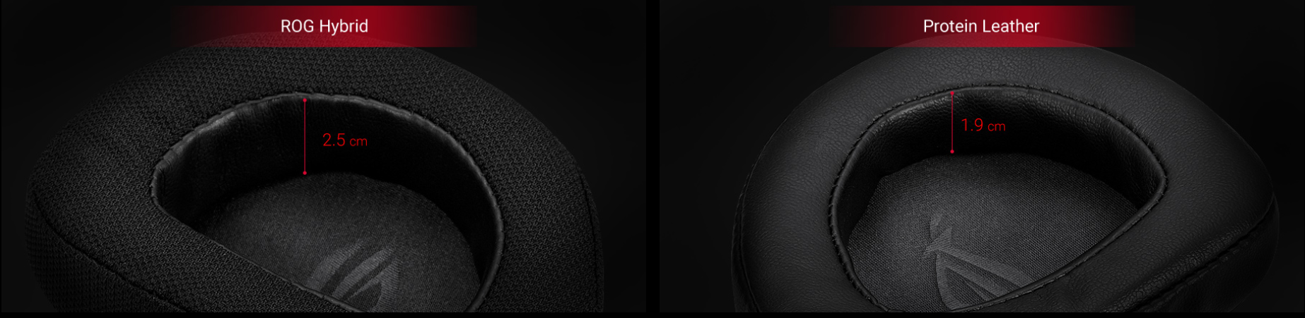 ROG Delta oferă două tipuri de potrivire și simțire, pentru ca dvs să puteți alege bazat pe nevoile sau preferinţele personale. Pernuțele ROG hibrid, care combină pielea naturală şi pânza, sunt mai groase, mai respirabile şi oferă potrivire perfectă pentru sesiunile lungi de joc. Pernuțele din piele naturală sunt relativ mai subţiri şi mai moi, ceea ce le face mai potrivite pentru utilizarea în mișcare.