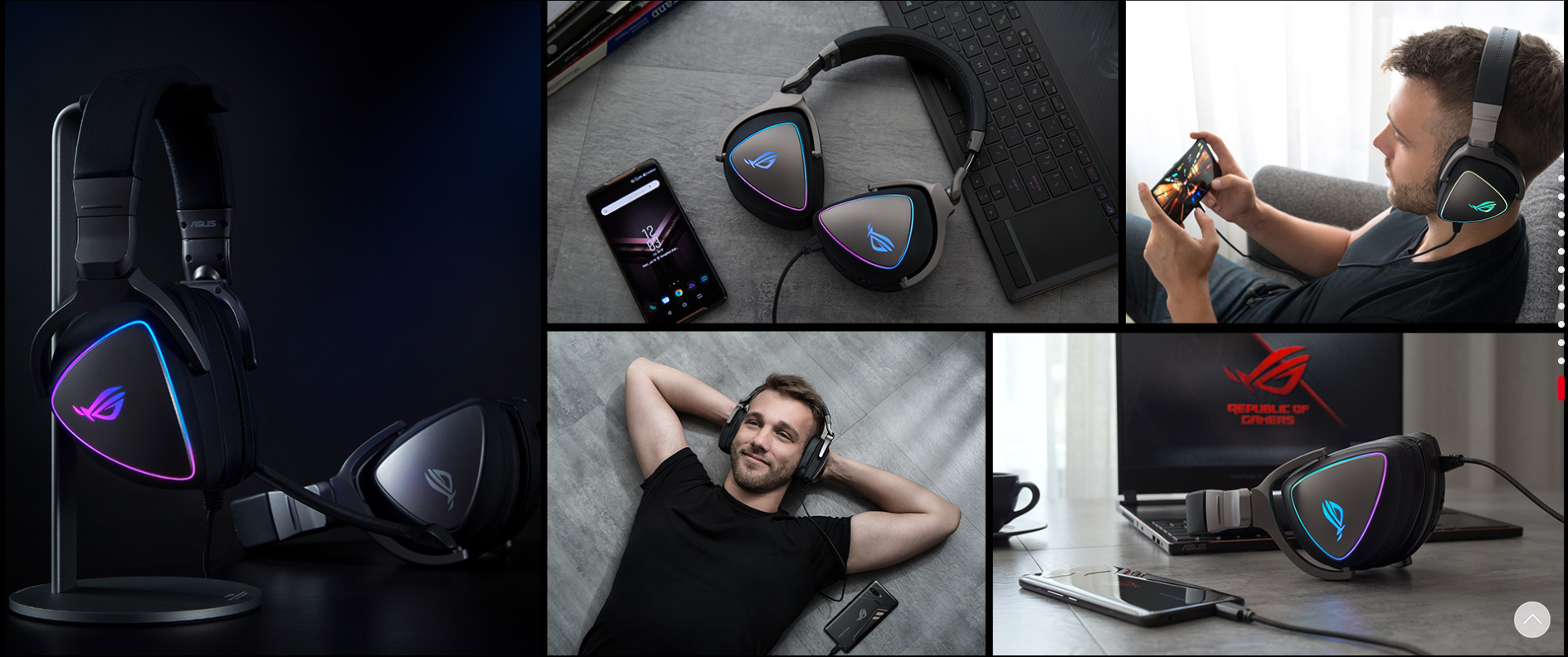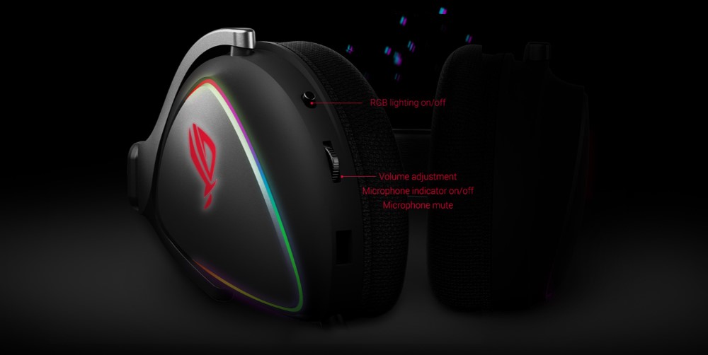 - Confort îmbunătățit cu pernuțe ergonomice pentru urechi, în formă de D, și ROG Hybrid