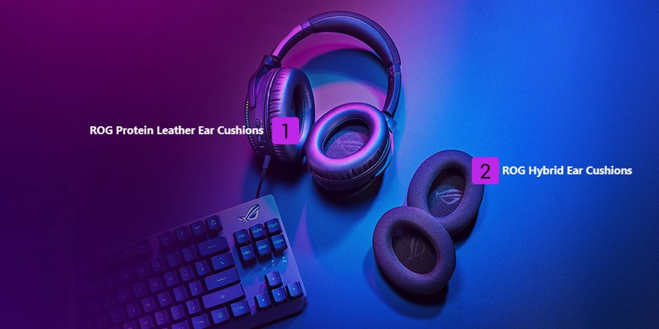 Proiectate pentru a asigura un maraton de jocuri confortabil, ROG Fusion II 300 cântăresc doar 310 grame și sunt prevăzute cu cupe ergonomice pentru urechi care se potrivesc îndeaproape cu unghiul natural al urechilor tale, pentru o potrivire perfectă. De asemenea, includ două tipuri de pernuțe pentru urechi pentru o senzație diferită.