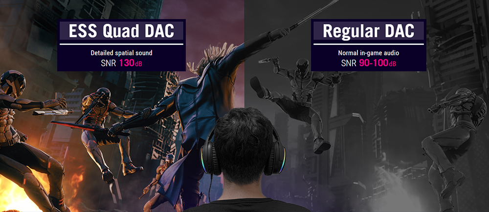 · ESS 9280 de înaltă rezoluție ESS 9280 cu tehnologie Quad DAC™ pentru un sunet de gaming realist și de neegalat