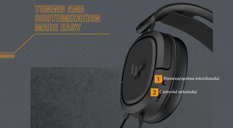 Cântărind doar 287 de grame, căștile ușoare TUF Gaming H1 sunt concepute pentru a-ți asigura confortul în timpul sesiunilor de joc prelungite.
