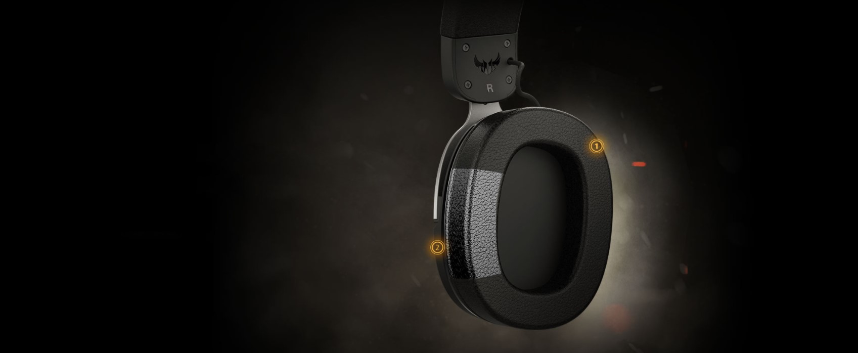 Căștile TUF Gaming H3 Wireless utilizează pernițe ASUS cu răcire rapidă pentru urechi care sunt fabricate 100 % din piele proteică și o spumă cu memorie cu răcire rapidă, pentru a oferi cel mai bun confort.