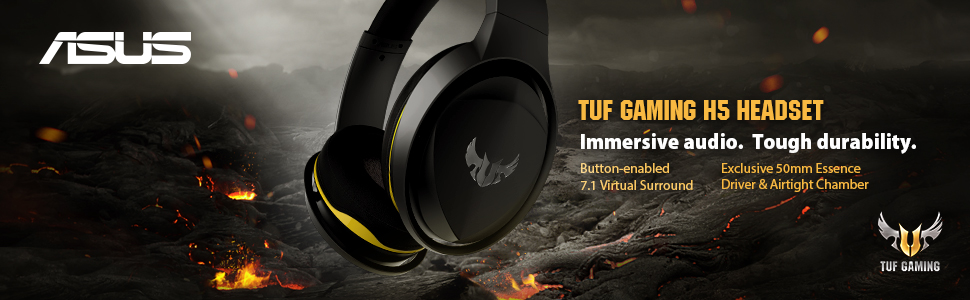 Noile căști cu microfon TUF Gaming H5 sunt proiectate astfel încât să ofere o calitate deosebită a sunetului, alături de o rezistență sporită. Mulțumită suportului pentru sunet surround virtual 7.1 și difuzoarelor exclusive ASUS Essence cu incinte acustice ermetice, TUF Gaming H5 îmbunătățește experiența audio în jocuri, oferind un sunet bogat, captivant. Designul cu greutate redusă asigură un nivel ridicat de confort pe durata sesiunilor prelungite de jocuri, iar bareta din oțel inoxidabil permite căștilor să treacă peste rigorile presupuse de utilizările și deplasările frecvente. Căștile TUF Gaming H5 folosesc un conector de 3.5mm, ceea ce le permite să fie folosite împreună cu diverse platforme, precum PC, Mac, PS4, Xbox One, Nintendo Switch și telefoane mobile.