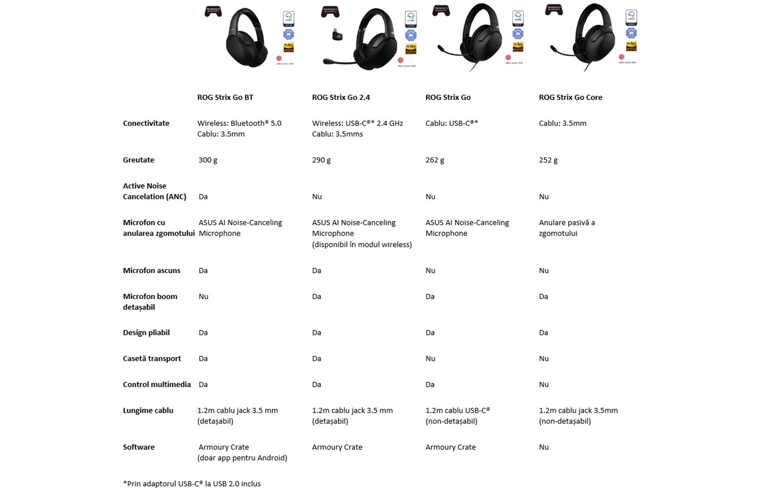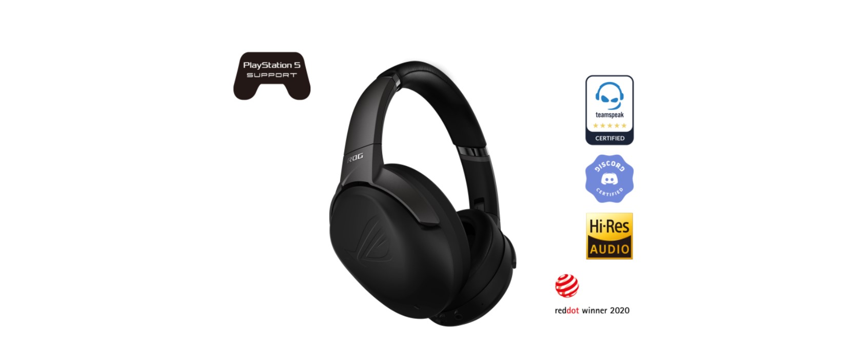 Căști gaming wireless ASUS ROG Strix GO BT, Bluetooth®, tehnologie Active Noise Cancelation (ANC), microfon AI pentru anularea zgomotului, tehnologie audio adaptivă Qualcomm® aptX™, compatibilitate PC, PlayStation® 5, Nintendo Switch™ şi dispozitive mobile