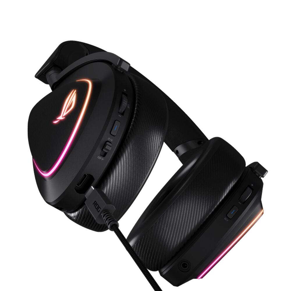 Casti gaming Bluetooth cu fir si wireless ASUS ROG Delta II negre iluminare aRGB