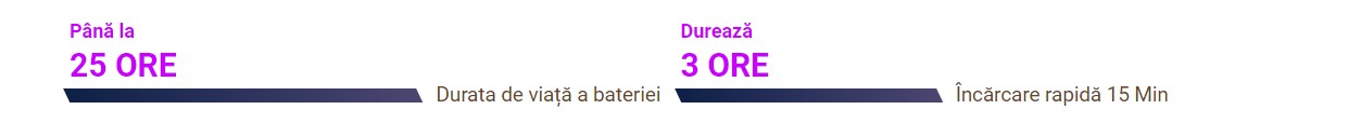 O încărcare rapidă de numai 15 minute este suficientă pentru redarea audio timp de până la trei ore, în vreme ce o încărcare completă oferă o autonomie a bateriei de până la 25 de ore, pentru jocuri nonstop, de dimineață până noaptea târziu.