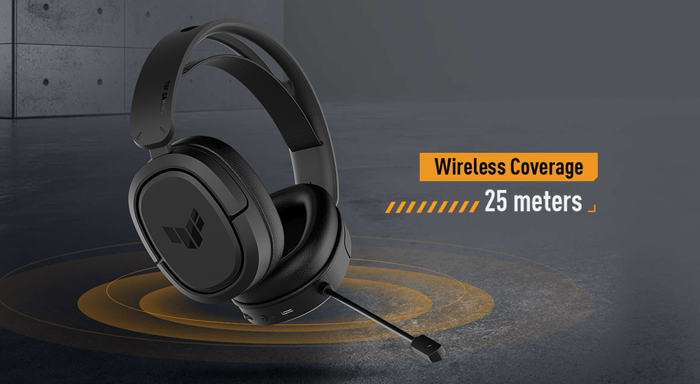 TUF Gaming H1 Wireless se ridică deasupra căștilor tradiționale cu tehnologia wireless de 2,4 GHz și un design cu antenă dublă. Deoarece conexiunea sa este activată prin intermediul unui dongle USB-C®, oferă o latență mai mică și o stabilitate mai bună decât căștile Bluetooth®. Împreună cu transmisia audio în timp aproape real, H1 Wireless oferă o acoperire extinsă de până la 25 de metri - astfel încât să te poți deplasa liber și să rămâi conectat.