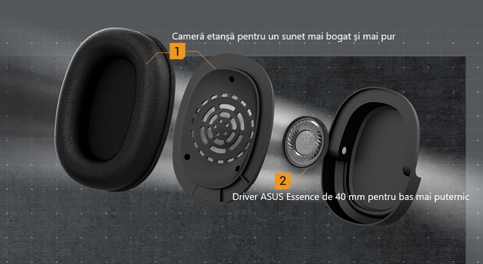 TUF Gaming H1 Wireless oferă libertatea unei conexiuni wireless de 2,4 GHz și un sunet cu adevărat imersiv, cu un răspuns bogat și profund al basului, datorită driverelor ASUS Essence de 40 mm, designului cu cameră etanșă și tehnologiei de sunet surround virtual 7.1. În plus, un microfon certificat pentru Discord și TeamSpeak oferă o comunicare vocală clară, iar o bandă de susținere ușoară pentru cap asigură confortul.