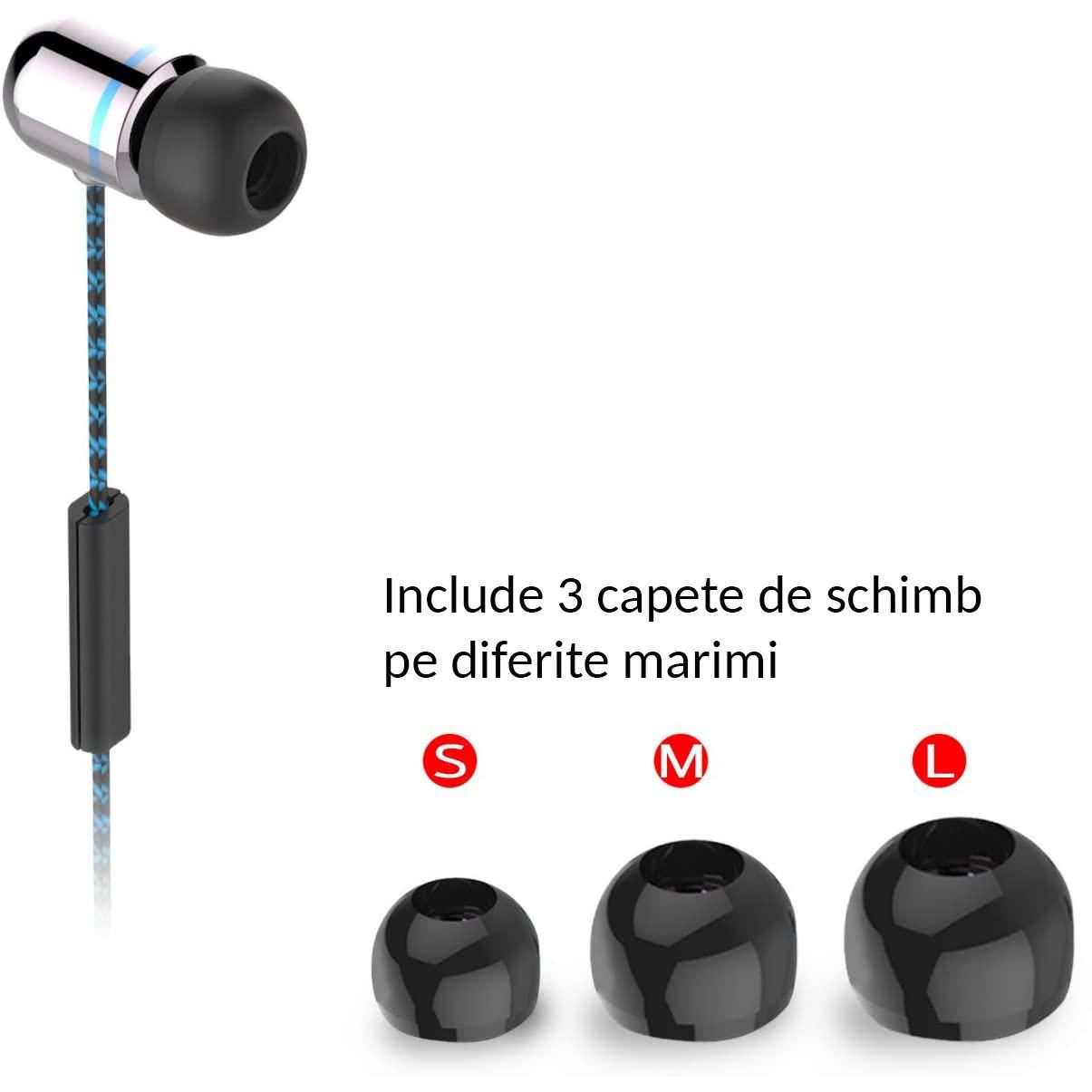 KWorld S14 Gaming Earphones, telecomanda pe fir cu microfon, difuzoare: ∅9mm (impedanta: 16Ω, sensibilitate: 100±3dB, frecventa de raspuns: 20Hz-20kHz), include 4 perechi de dopuri pentru urechi memory foam de dferite marimi, conectori: 1x 3.5mm TRRS jack placat cu aur, cablu imbracat in material textil, lungime cablu: 1.2m