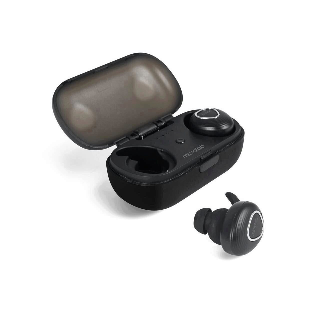 Microlab Trekker200 Wireless Earbuds Black, tip: In-Ear, protocol wireless: Bluetooth, autonomie: 2 ore, includ microfon, acumulator cutie incarcare: 400mAh, conectori incarcator: microUSB, greutate: 36g