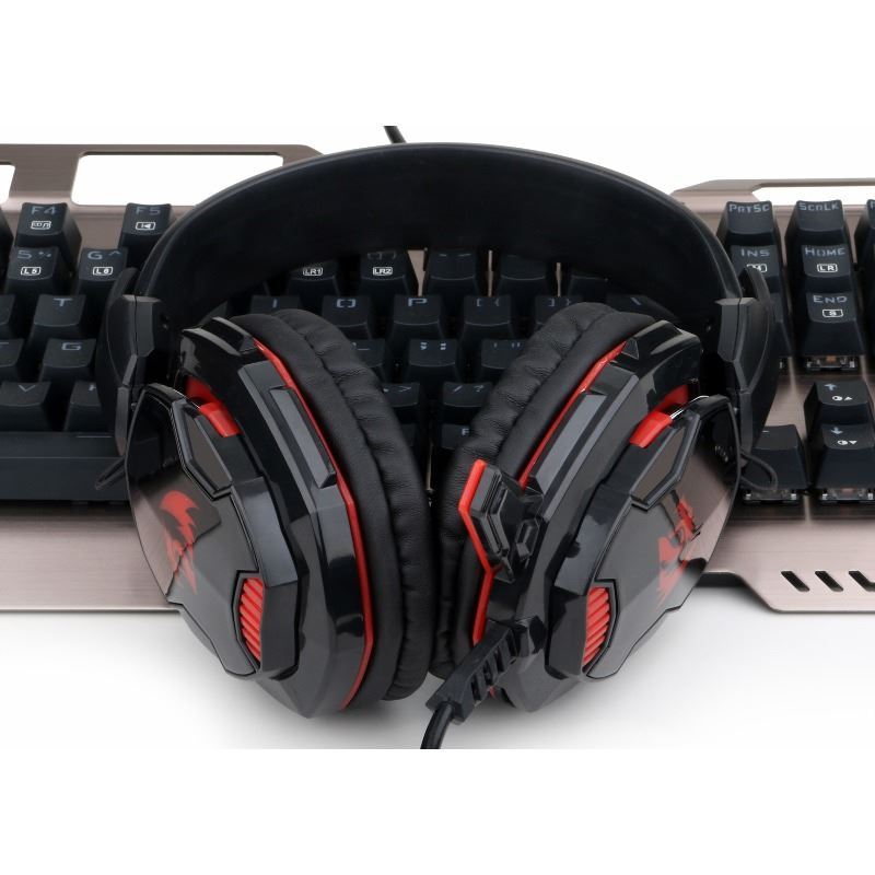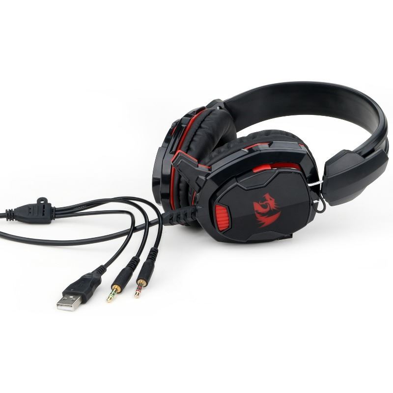 Redragon Glaucus Black, include microfon (sensibilitate: -42dB±3dB, impedanta: 2.2KΩ), difuzoare: 40mm (frecventa raspuns: 20Hz-20KHz, sensibilitate (S.P.L): 110dB±3dB, impedanta: 32Ω), design ergonomic, conectori: 2x jack 3.5mm TRS, lungime cablu: 2m
