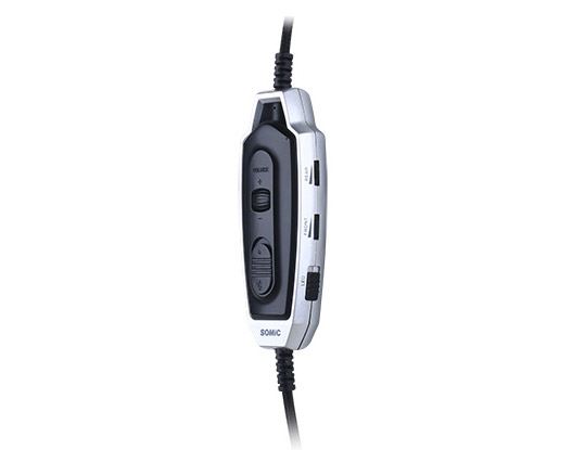 Somic E95X real 5.2 surround, sunet real surround 5.2 (8 difuzoare), microfon omnidirectional (dimensiuni: ∅4.0x1.5mm, sensibilitate: -47dB±3dB, impedanta: ≤2.2KΩ), design ergonomic, difuzoare: front bass 30mm (impedanta 32Ω, frecventa raspuns: 20Hz-20KHz, rated power: 10mW, maximum power: 20mW, sensibilitate (S.P.L): 95dB±3dB), front 40mm (impedanta: 32Ω, frecventa raspuns: 100Hz-10KHz, rated power: 20mW, maximum power: 30mW, sensibilitate (S.P.L): 101dB±3dB), center 40mm (impedanta 32Ω, frecventa raspuns: 100Hz-10KHz, rated power: 20mW, maximum power: 30mW, sensibilitate (S.P.L): 95dB±3dB), rear 20mm (impedanta 16Ω, frecventa raspuns: 100Hz-20KHz, rated power: 10mW, maximum power: 20mW, sensibilitate (S.P.L): 88dB±3dB), vibrator 20mm (impedanta 32Ω, frecventa raspuns: 10Hz-400Hz, rated power: 50mW, maximum power: 200mW), signal to noise ratio: ≥-60dB, total harmonic distortion: ≤0.6%, include functie de vibratii, lungime cablu: 2m, conectori: 1x USB, greutate: 420g