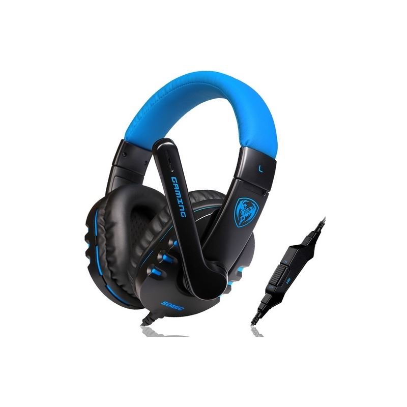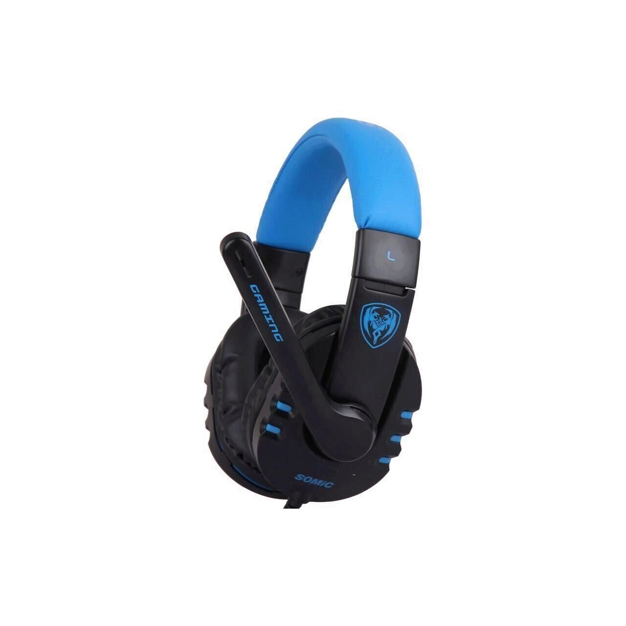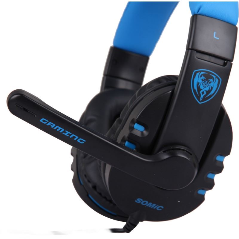 Somic G923 Blue, microfon omnidirectional (dimensiuni: ∅6.0x5.0mm, sensibilitate: -38dB±3dB, impedanta: ≤2.2KΩ), design ergonomic, difuzoare: 40mm (impedanta: 32Ω, frecventa raspuns: 20Hz-20KHz, sensibilitate (S.P.L): 98dB±3dB), lungime cablu: 2.5m, conectori: 2x jack TRS 3.5mm, greutate: 268g