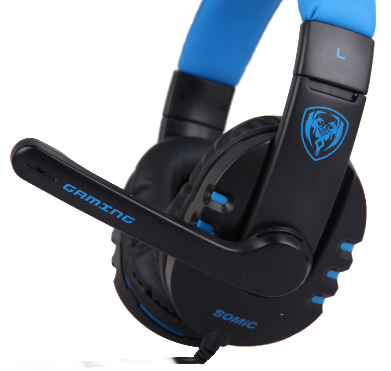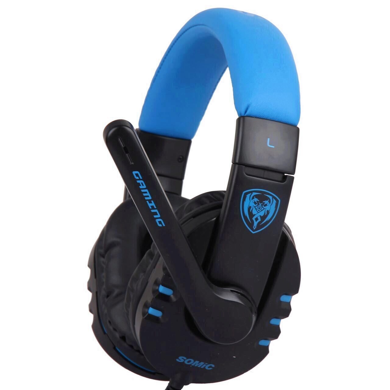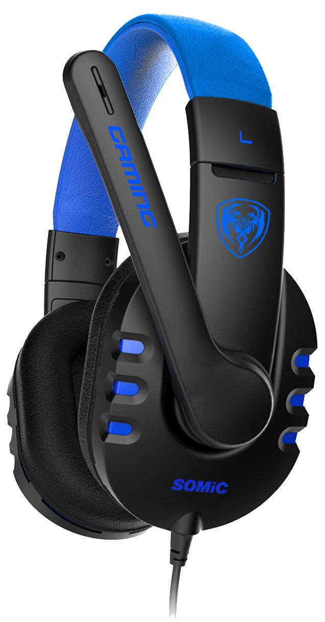 Somic G923 Blue, microfon omnidirectional (dimensiuni: ∅6.0x5.0mm, sensibilitate: -38dB±3dB, impedanta: ≤2.2KΩ), design ergonomic, difuzoare: 40mm (impedanta: 32Ω, frecventa raspuns: 20Hz-20KHz, sensibilitate (S.P.L): 98dB±3dB), lungime cablu: 2.5m, conectori: 2x jack TRS 3.5mm, greutate: 268g