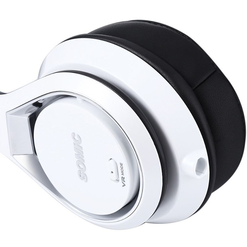 Somic VRH360 White, posibilitatea plierii pentru un transport mai usor, functie vibratii VIB III, mod VR cu sunet panoramic 360°, compatibil cu Samsung, Sony, Cardboard VR si altele, microfon omnidirectional (dimensiuni: ∅4.0x1.5mm, sensibilitate: -38dB±3dB (la 1KHz), impedanta: ≤2.2KΩ), difuzoare: 40mm (impedanta: 32Ω, frecventa raspuns: 20Hz-20KHz, sensibilitate (S.P.L): 95dB±3dB (la 1kHz)), lungime cablu: 1.2m, conector: 1x jack TRRS 3.5mm (cu microfon si controale multimedia pe fir), 1x USB (alimentare pentru functie vibratii), standard TRRS: CTIA, greutate: 255g