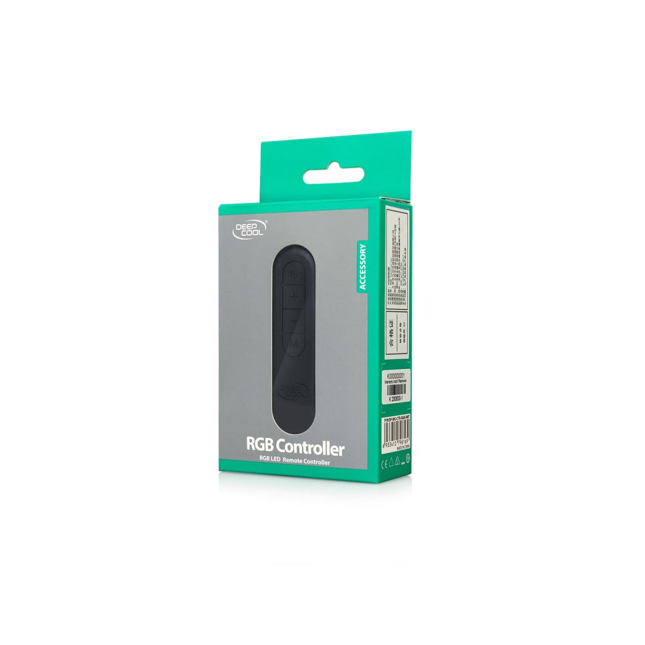 Controller RGB Deepcool cu telecomanda, permite configurarea device-urilor RGB, conector alimentare: SATA, conector RGB: 4-pin(+12V-G-R-B), lungime cablu alimentare: 400mm, lungime cablu date: 170mm, prindere magnetica, include telecomanda, dimensiuni telecomanda: 90x27x9mm, dimensiuni controller: 55x17x8mm, greutate: 50g