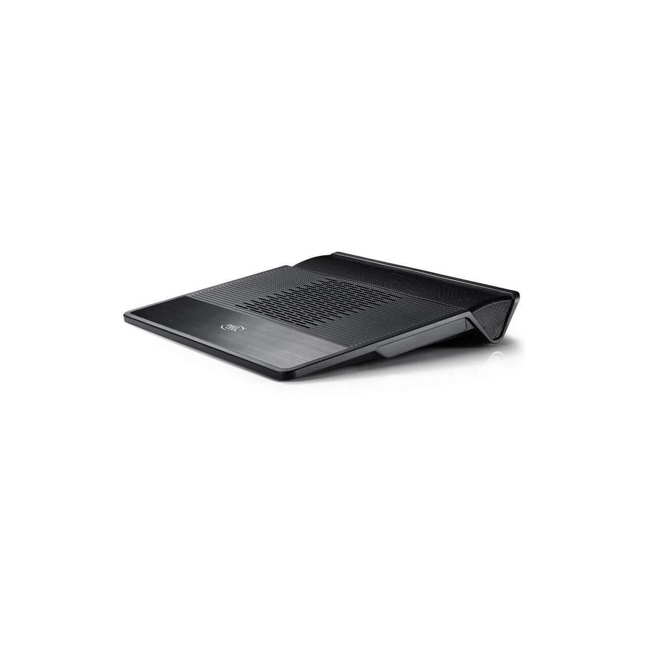 Deepcool M3 Black, structura din aluminiu, plastic si mesh metalic, dimensiune notebook: 15.6” (maxim), 140mm fan (700-1100 RPM, 47.35 CFM, 21 dBA, control turatie ventilatoare), include 2 boxe stereo si subwoofer (frecventa raspuns: 180Hz-15KHz, dimensiune tweetere: 2x 52mm (2 inch), dimensiune subwoofer: 57mm (2.25 inch), sensibilitate: 450 mV), 2 porturi USB, alimentare prin portul USB, design anti-alunecare, dimensiuni: 360x327x54mm, greutate: 1100g