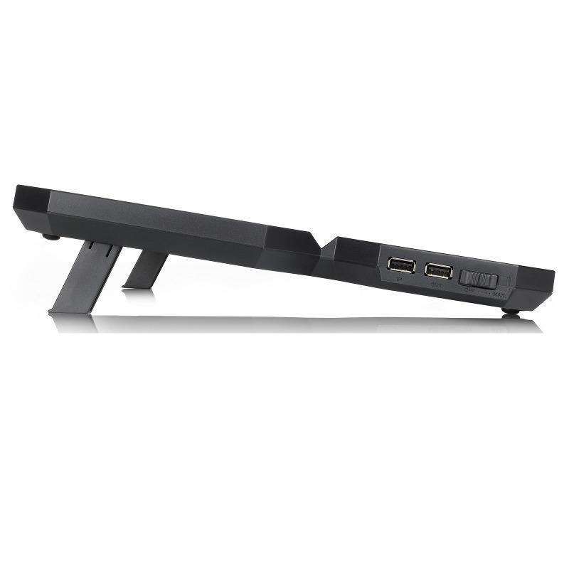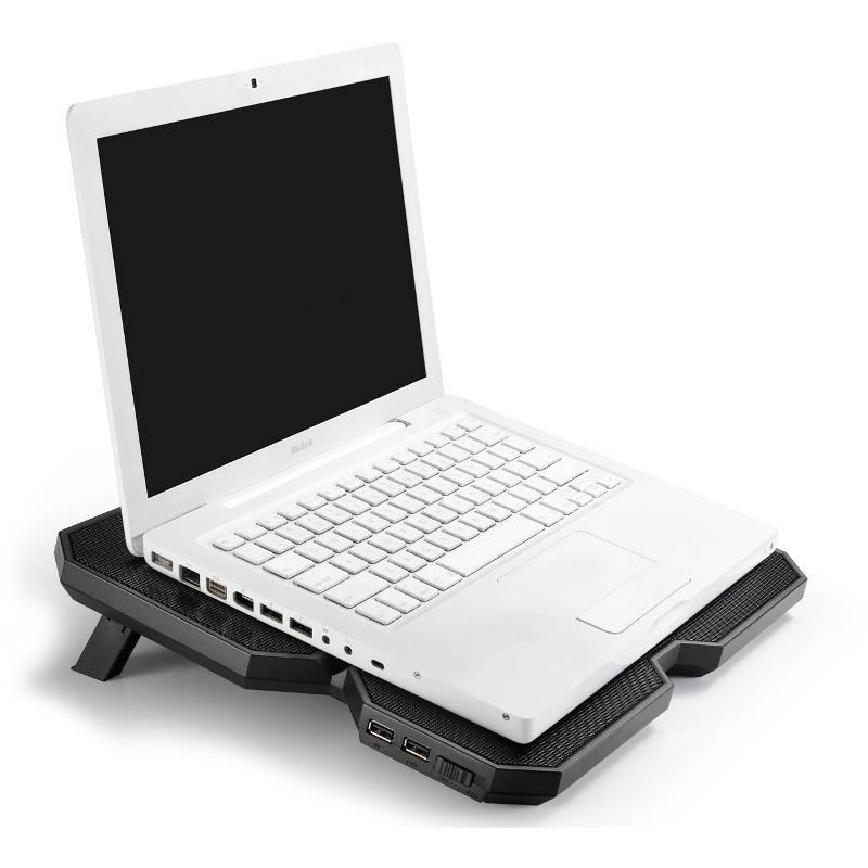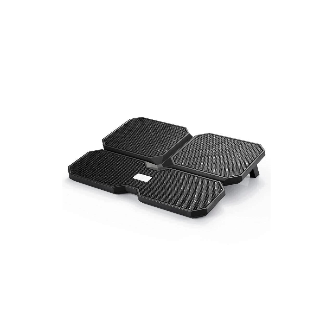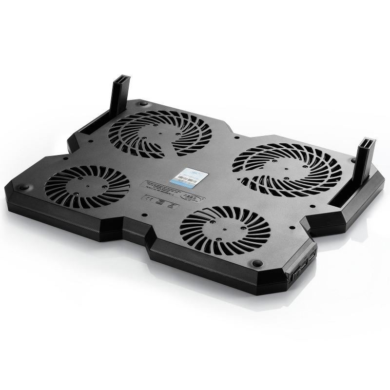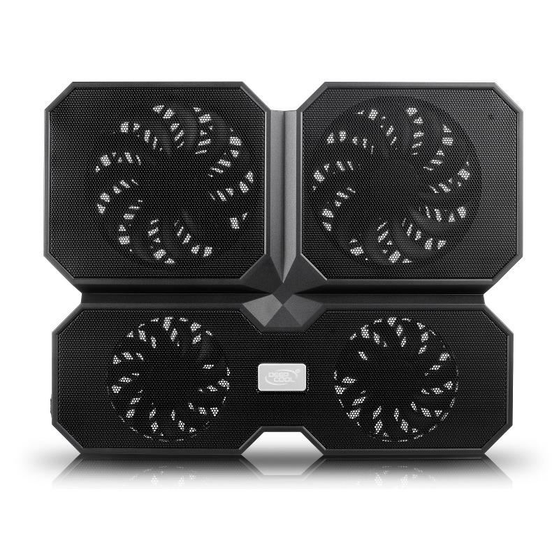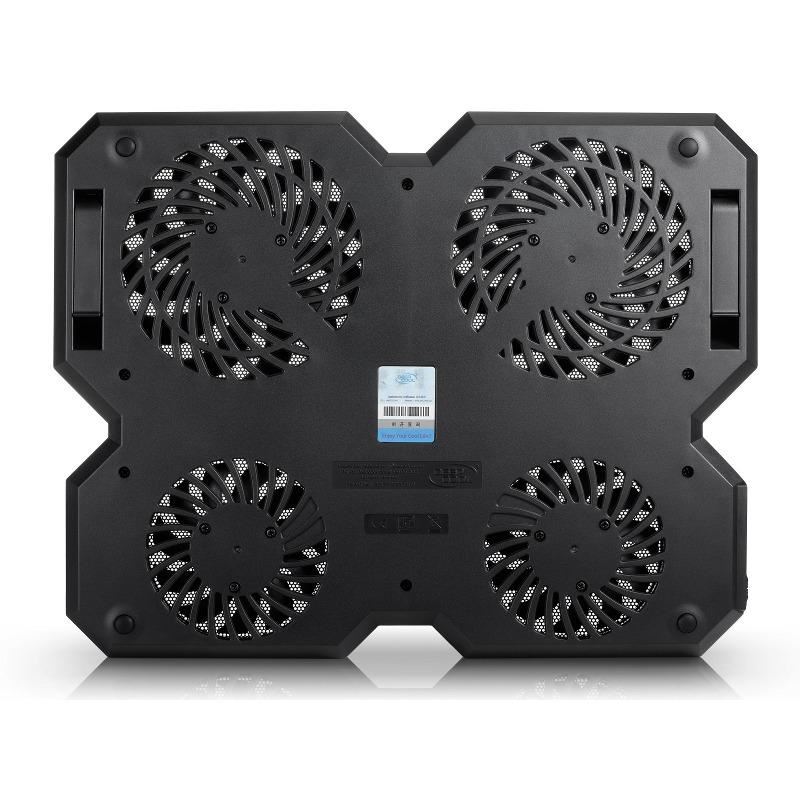 Deepcool Multi Core X6, structura din mesh metalic si plastic, dimensiune notebook: 15.6” (maxim), 2x 140mm fans si 2x 100mm fans (2x 1000 RPM si 2x 1300 RPM, 121.4 CFM, 24 dBA), 2 porturi USB, 2 unghiuri de inclinatie, alimentare prin portul USB, dimensiuni: 380x295x24mm, greutate: 900g