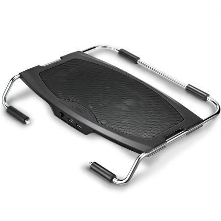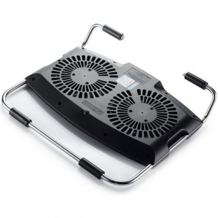 Deepcool N2000 IV, structura din mesh metalic, otel si plastic, dimensiune notebook: 15.6” (maxim), dual 140mm fans (1000 RPM, 94.7 CFM, 25.1 dBA), 2 porturi USB, design anti-alunecare, dimensiuni: 340.5x311.5x57.5mm
