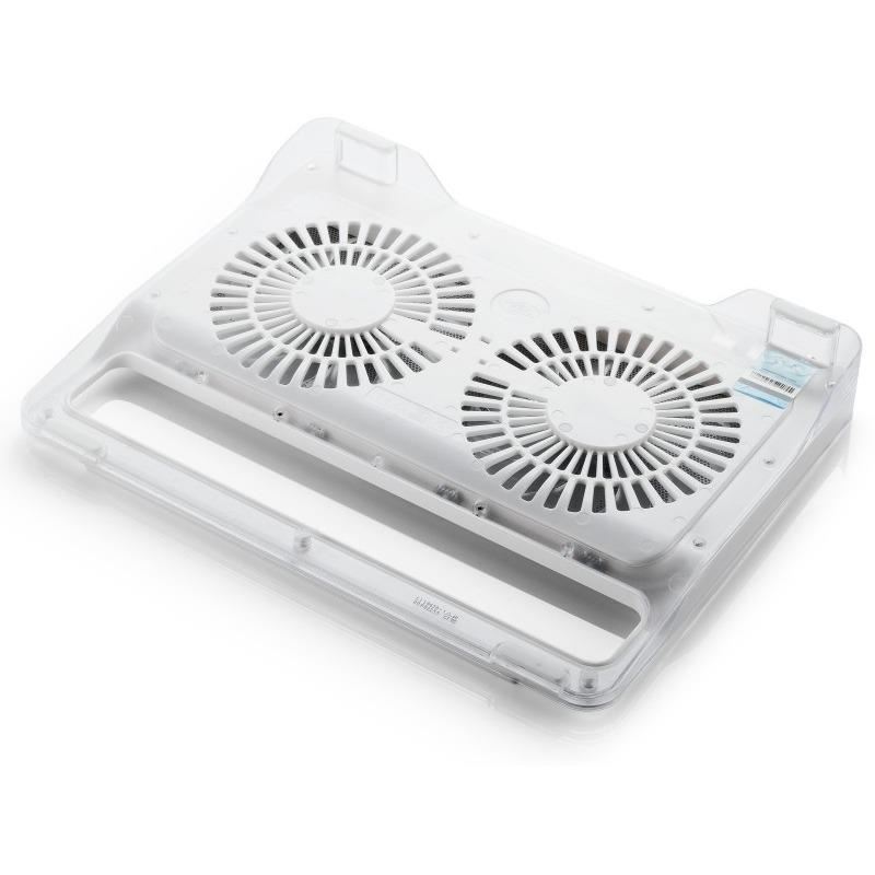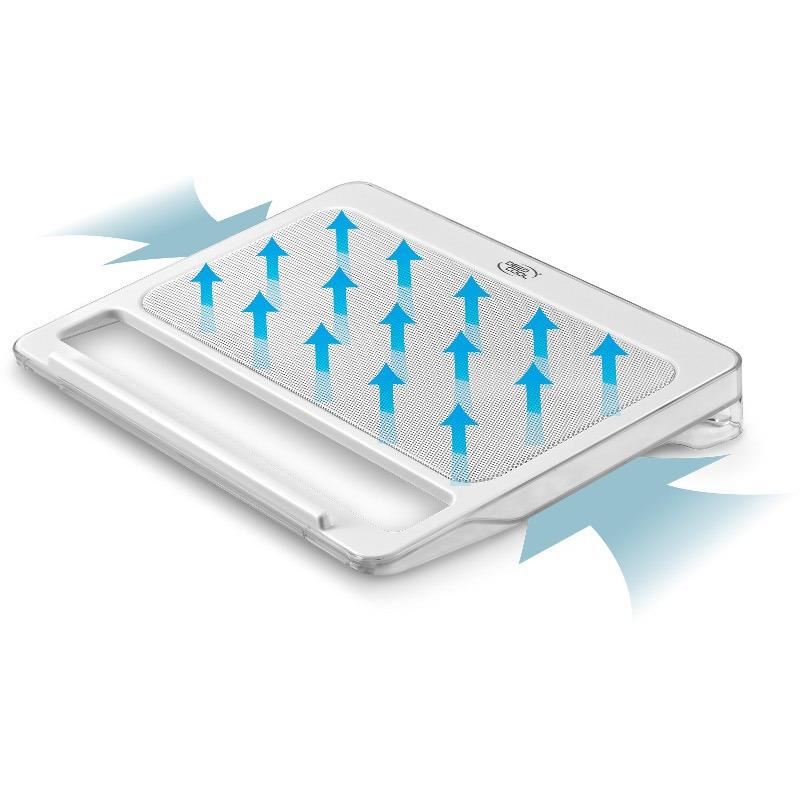 Deepcool N2200, structura din mesh metalic si plastic, dimensiune notebook: 15.4” (maxim), dual 140mm fans (1000 RPM, 94.7 CFM, 25.1 dBA), design anti-alunecare, 2 porturi USB, alimentare prin portul USB, buton power, dimensiuni: 350x273x55mm
