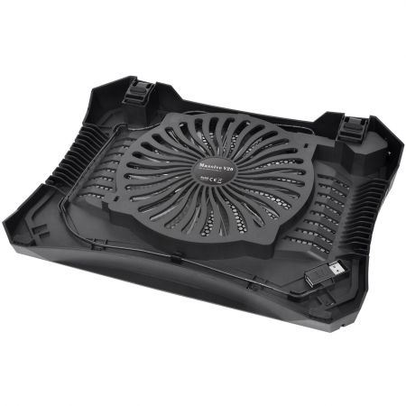 Thermaltake Massive V20, structura din plastic si mesh metalic, dimensiune notebook: 10” - 17” (maxim), ventilator silentios de 200mm (600-800 RPM, 70.38 CFM, max 31.7 dBA, control turatie ventilator, buton ON/OFF pentru LED-urile ventilatorului), doua unghiuri de inclinare, alimentare de la portul USB, dimensiuni: 365 x 276 x 42 mm, greutate: 700g