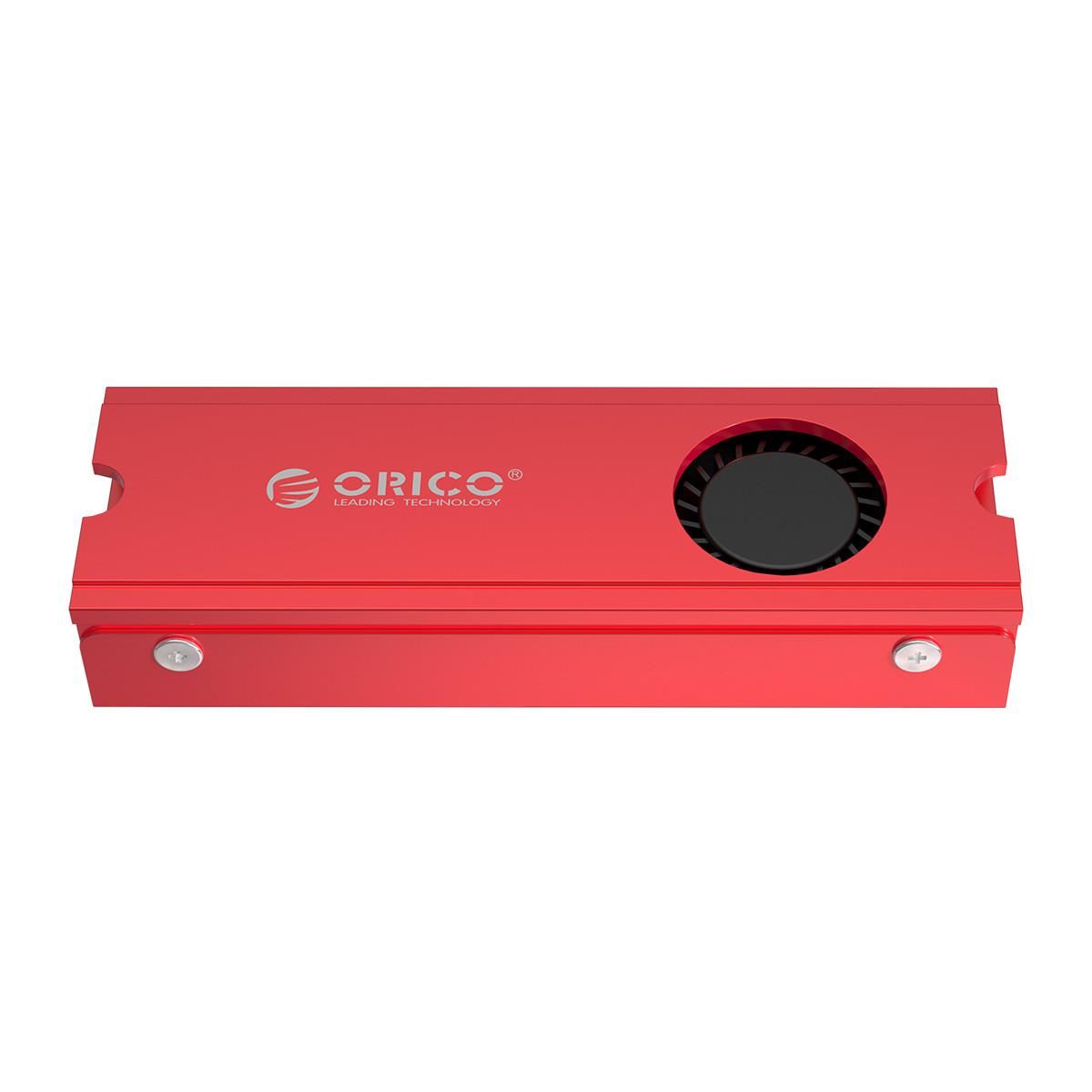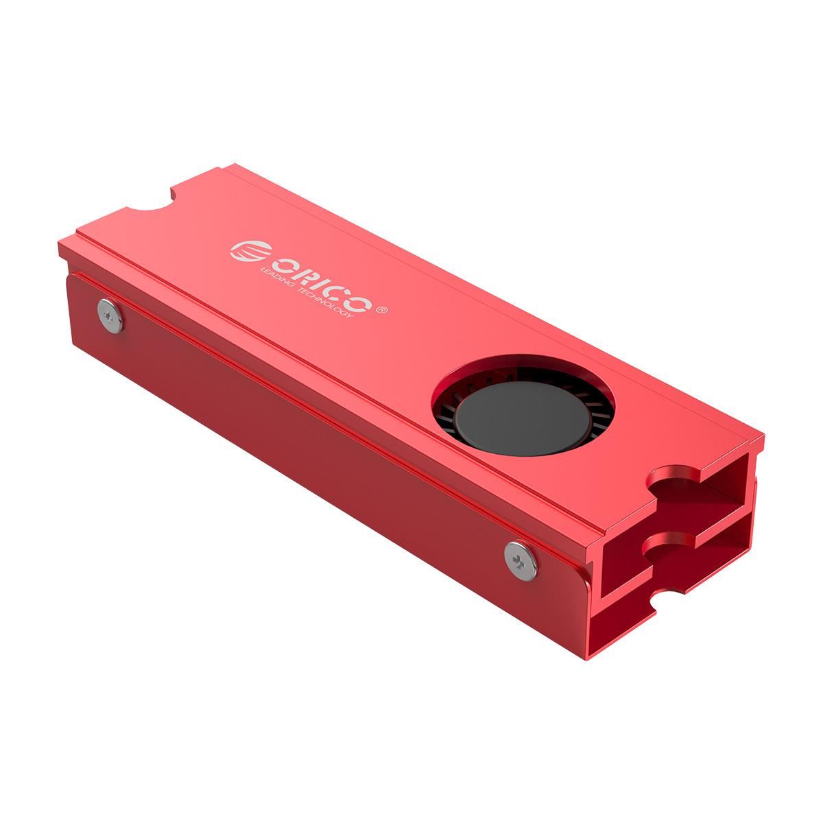 Cooler M2 Orico M2SRC racire activa rosu, alimenare SATA, 2 thermal pad-uri, compatibil cu SSD-uri B si M key de 22x80mm, lungime cablu: 50cm, dimensiuni: 76x25x14mm