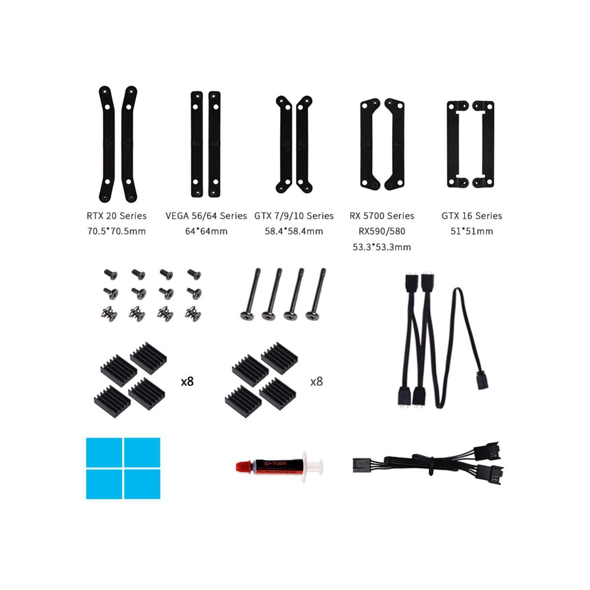 Cooler placa video cu lichid ID-Cooling Iceflow 240VGA iluminare aRGB, sistem pre-umplut cu lichid, 1x 24025 aRGB FAN (900-2000RPM±10%, 56.5CFM×2, 16-31.5dB(A)), 1x 92mm Hydraulic Bearing aRGB fan (800-2500RPM±10%, 44.3CFM, 14.0-33.4dB(A), 3.24mmH2O) pompa silentioasa (6500RPM±10%, ≤24.0dB(A), 1.8 m H2O, 240 L/Hr), dimensiuni radiator: 285x120x30mm, lungime tub: 380mm, placi video compatibile: RTX 20XX Series / GTX 1660 Series / GTX 10XX Series /900 Serie / AMD RX 200/300 Series, gauri de montare GPU: 70.5x70.5mm / 51.0x51.0mm / 58.4x58.4mm / 53.3x53.3mm