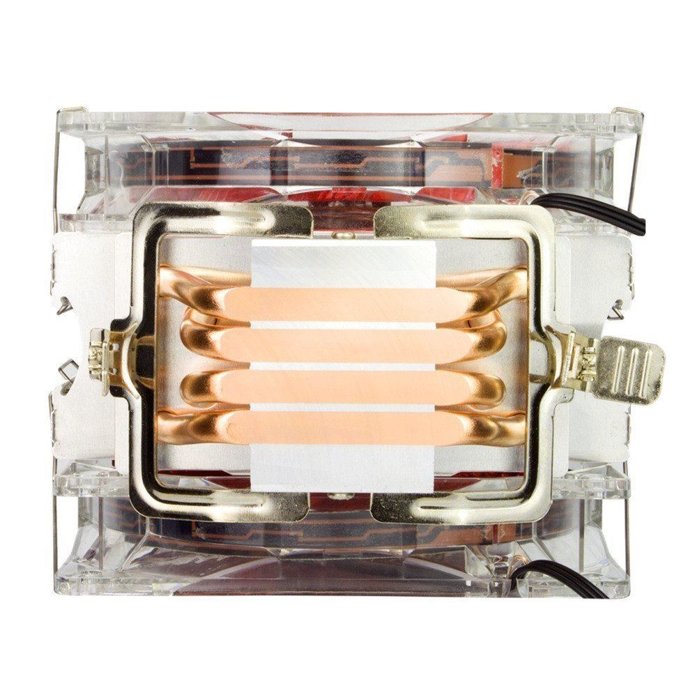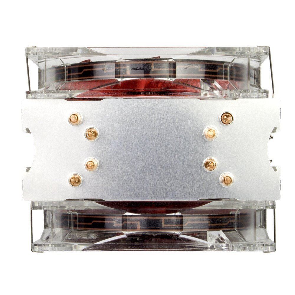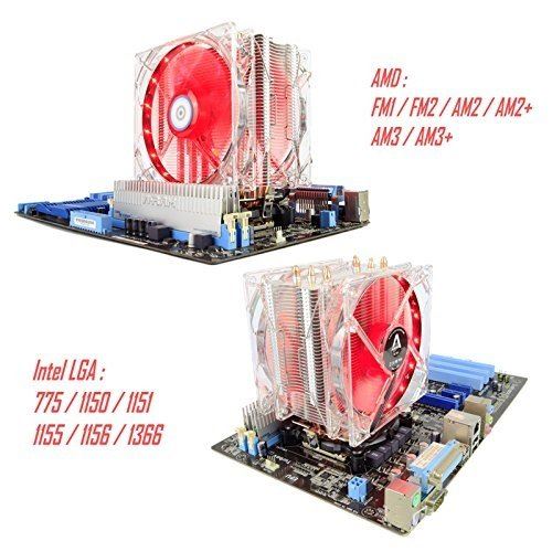 Cooler procesor Alseye Eddy 120 iluminare rosie, 4 heatpipe-uri direct touch, putere de racire de pana la 250W TDP, 2x 120mm Red LED fan (800-1600 RPM, 63.4 - 73.4 CFM, max. 25 dBA, PWM), compatibil Intel LGA 1366/1156/1155/1151/1150/775 / AMD toate modelele pastrand sistemul de prindere de pe placa de baza, dimensiuni: 128x102x152mm, greutate: 620g