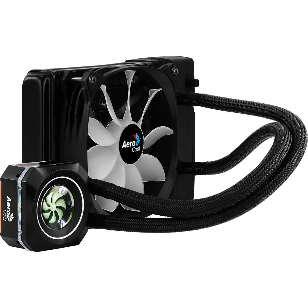 Cooler procesor cu lichid Aerocool Pulse L120F iluminare aRGB, TPD: 200W, sistem pre-umplut cu lichid, un ventilator 120mm Hydraulic Bearing aRGB (600-1800 RPM±10%, 29.84-71.65 CFM, 10.5 – 31.8 dBA, 0.59 – 1.34 mmH2O, PWM), pompa silentioasa cu LED-uri aRGB (2800 rpm, < 25dBA), dimensiuni radiator: 176x123.5x27mm, sincronizare RGB cu placile de baza compatibile, compatibilitate: AMD FM1/FM2/AM4/AM3+/AM3/AM2+/AM2 / Intel LGA 2066/2011-V3/115X/1366/775