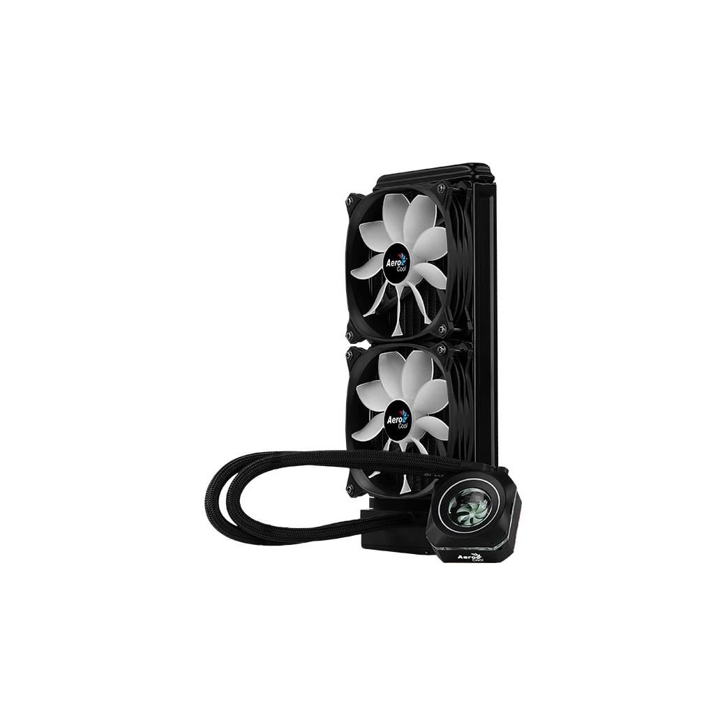 Cooler procesor cu lichid Aerocool Pulse L240F iluminare aRGB, TPD: 400W, sistem pre-umplut cu lichid, doua ventilatoare 120mm Hydraulic Bearing aRGB (600-1800 RPM±10%, 29.84-71.65 CFM, 10.5 – 31.8 dBA, 0.59 – 1.34 mmH2O, PWM), pompa silentioasa cu LED-uri aRGB (2800 rpm, < 25dBA), dimensiuni radiator: 296x123.5x27mm, sincronizare RGB cu placile de baza compatibile, compatibilitate: AMD FM1/FM2/AM4/AM3+/AM3/AM2+/AM2 / Intel LGA 2066/2011-V3/115X/1366/775