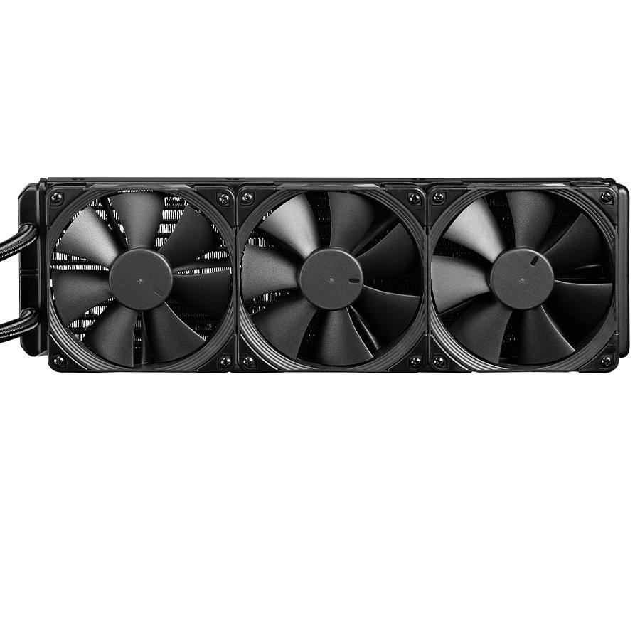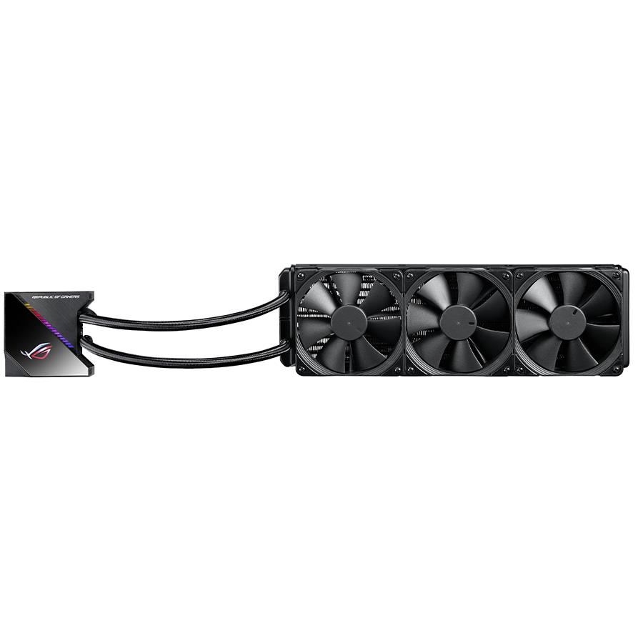 Cooler procesor cu lichid ASUS ROG RYUJIN 360 negru iluminare aRGB, sistem pre-umplut cu lichid, pastila procesorului are integrat un display oLED de 1.77" pe care sunt afisate temparatura, viteza ventilatoarelor, frecvente sau voltaje si un ventilator (4,800 RPM +/- 10%, 3.23 mmH2O, 19.41 CFM), compatibil ASUS Aura Sync, dimensiuni water block: 100x100x70mm, material water block: cupru, trei ventilatoare Noctua NF-F12 InductrialPPC 2000 PWM (450 - 2000 RPM +/- 10%, 71.6 CFM, 29.7 dBA, 121.8 m3h, 3.94 mmH2O, PWM), pompa silentioasa (20 dBA), dimensiuni radiator: 394x121x27mm, lungime tuburi: 380mm, compatibilitate: AMD AM4, TR4 (pentru socket-ul TR4 bracket-ul de montare se regaseste in cutia procesorului) / Intel LGA115/1366/2011/2011-3/2066