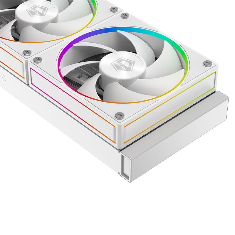 Cooler procesor cu lichid cu display ID-Cooling SL240 alb iluminare aRGB, sistem pre-umplut cu lichid, putere de racire de pana la 300W TDP, 2x 120mm Fluid Dynamic Bearing aRGB fans (500~2000±10%RPM, 78CFM, 2.68mmH2O, 29.9dB(A), PWM), pompa aRGB silentioasa (Ceramic Bearing, 2100 RPM, 25dBA) cu display (480x480px, 600cd/m², 24-bit, 16.7 million, suporta GIF si MP4), dimensiuni waterblock: 76x76x58mm, compatibil: Intel LGA2066/2011/1200/1700/115x si AMD AM4/AM5, dimensiuni radiator: 276x120x27mm, lungime tub: 400mm, compatibil cu Asus Aura Sync / Gigabyte RGB Fusion / ASRock Polychrome Sync / MSI Mystic Light