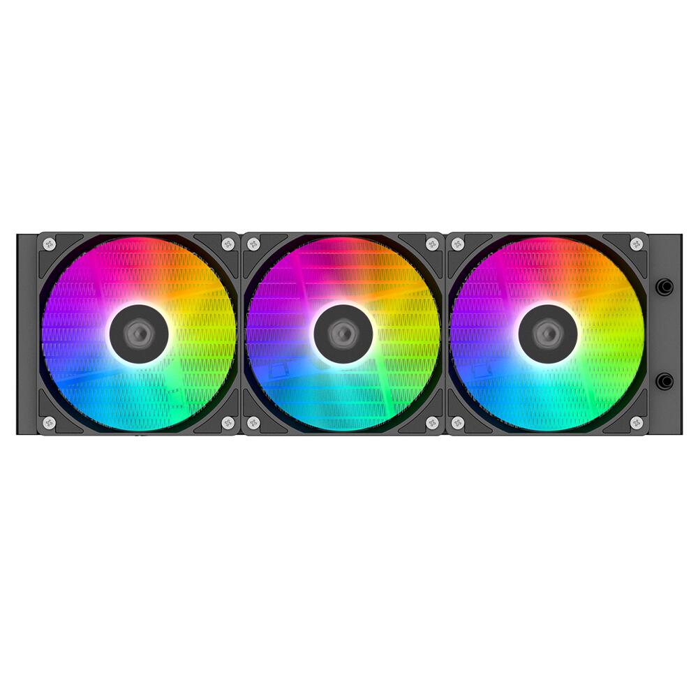 Cooler procesor cu lichid cu display ID-Cooling SL360 XE negru iluminare aRGB, sistem pre-umplut cu lichid, putere de racire de pana la 350W TDP, 3x 120mm Hydraulic Bearing aRGB fans (500 - 1800±10%RPM, 76.16CFM, 2.16mmH2O, 35.2dB(A), PWM), pompa aRGB silentioasa (Ceramic Bearing, 2500 RPM, 25dBA) cu display (480x480px, 600cd/m², 24-bit, 16.7 million, suporta GIF si MP4), dimensiuni waterblock: 76x76x58mm, compatibil: Intel LGA2066/2011/1851/1700/1200/115x si AMD AM4/AM5, dimensiuni radiator: 397x120x27mm, lungime tub: 465mm, compatibil cu Asus Aura Sync / Gigabyte RGB Fusion / ASRock Polychrome Sync / MSI Mystic Light